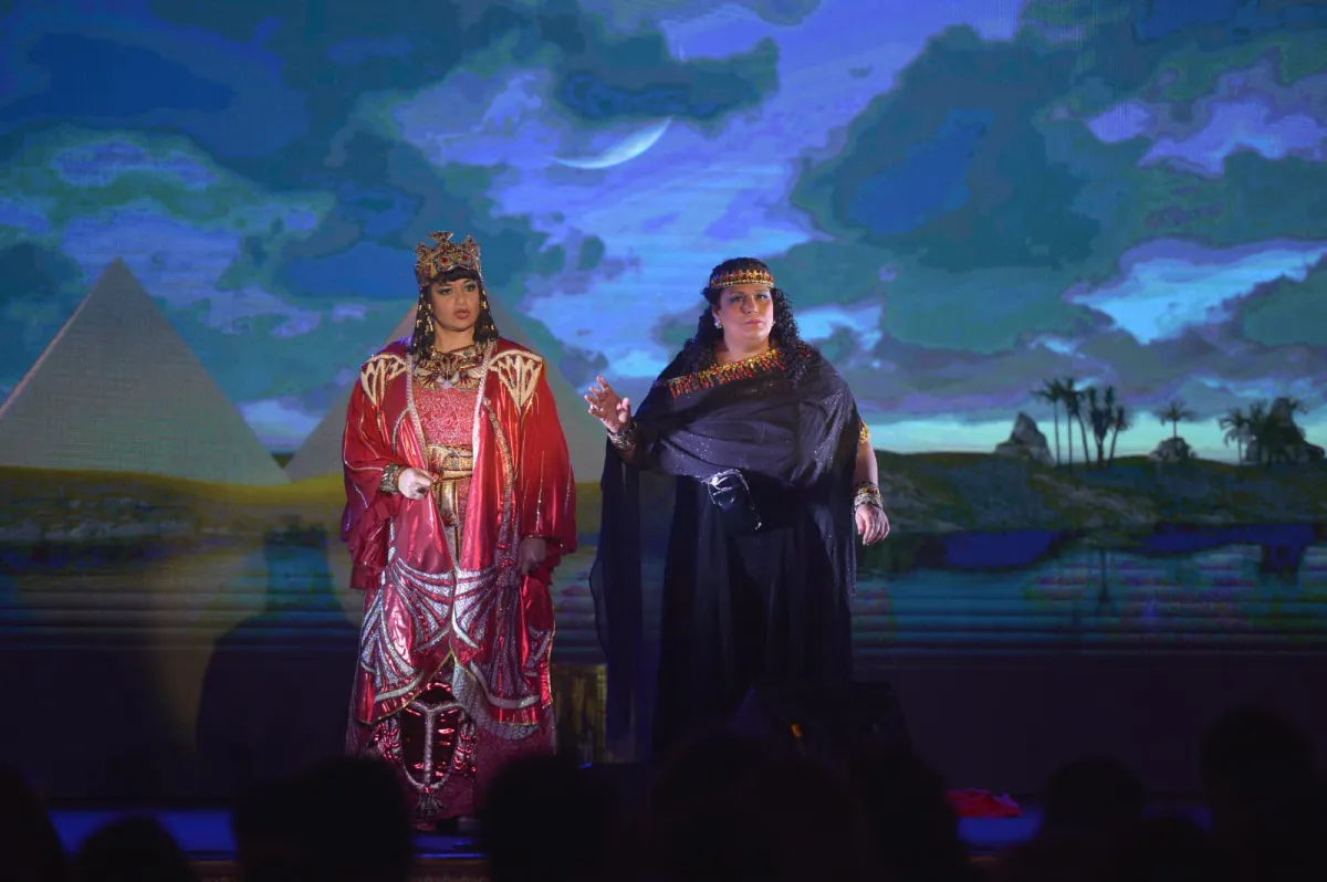 تمكن نجوم فرقة أوبرا القاهرة في جذب الأنظار بأدائهم المتميز وقدراتهم الصوتية والحركية الفائقة من سرد القصة بتمكن واقتدار وفي خلفياتهم صور مجسمة تعبر عن العمق التاريخي ومنها المعابد الفرعونية والأهرامات والنيل مع توظيف الإمكانيات التكنولوجية والمؤثرات الضوئية والصوتية والتي خدمت العرض بشكل مباشر ومؤثر. وقد تم دمج ذلك في إطار رؤية فنية وفكرية جديدة للمخرج هشام الطلي لتعبر عن مضمون العمل وأهدافه من حيث تضافر الإبداعات الفنية للموسيقى والغناء والباليه بما يليق بأهمية وعظمة تاريخ مصر.