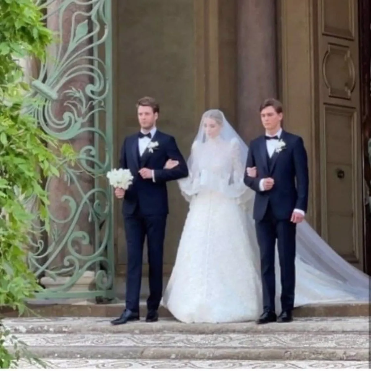 ولكن في خروج عن التقاليد، سارت العروس في الممر من قبل أخويها "لويس سبنسر" و"صمويل أيتكين"، وليس والدها شقيق الأميرة ديانا الأصغر "تشارلز"، إذ أنه من غير المعروف ما إذا كان والدها قد حضر حفل الزفاف.