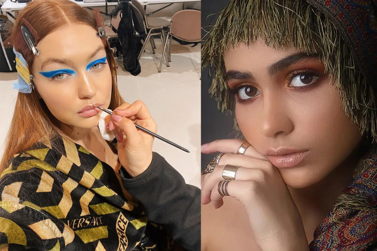 ترغبين في لوك ممتع وجذاب؟ الطريقة الأسهل لذلك هي اعتماد صبغة الشعر النحاسي واستخدام الأيلاينر باللون الأزرق، بشكل بارز وبأسلوب مجنح فوق الجفن العلوي، بحيث يكون عريضاً وممدوداً من مدمع العين وصولاً الى خارج العين، مع إضاءة مدمع العين بالظل الفضي اللامع. علماً أن صيحات الشعر والمكياج هذه مستوحاة من العارضة العالمية جيجي حديد Gigi Hadid.