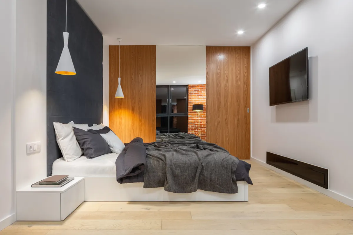 يقضي المبدأ العام بإبعاد شاشة التلفزيون (أو أي مصدر إلهاء) عن غرفة النوم، حتى تساعد المساحة شاغلها في الاسترخاء، بعد يوم متعب، والدخول في السبات. لكن، يفضّل البعض أن يجعل غرفته شبيهة بغرفة الفندق، لتحتوي الأولى تاليًا على شاشة مثبتة على الجدار في مقابل السرير أو ضمن ديكور مميّز يغني الغرفة.