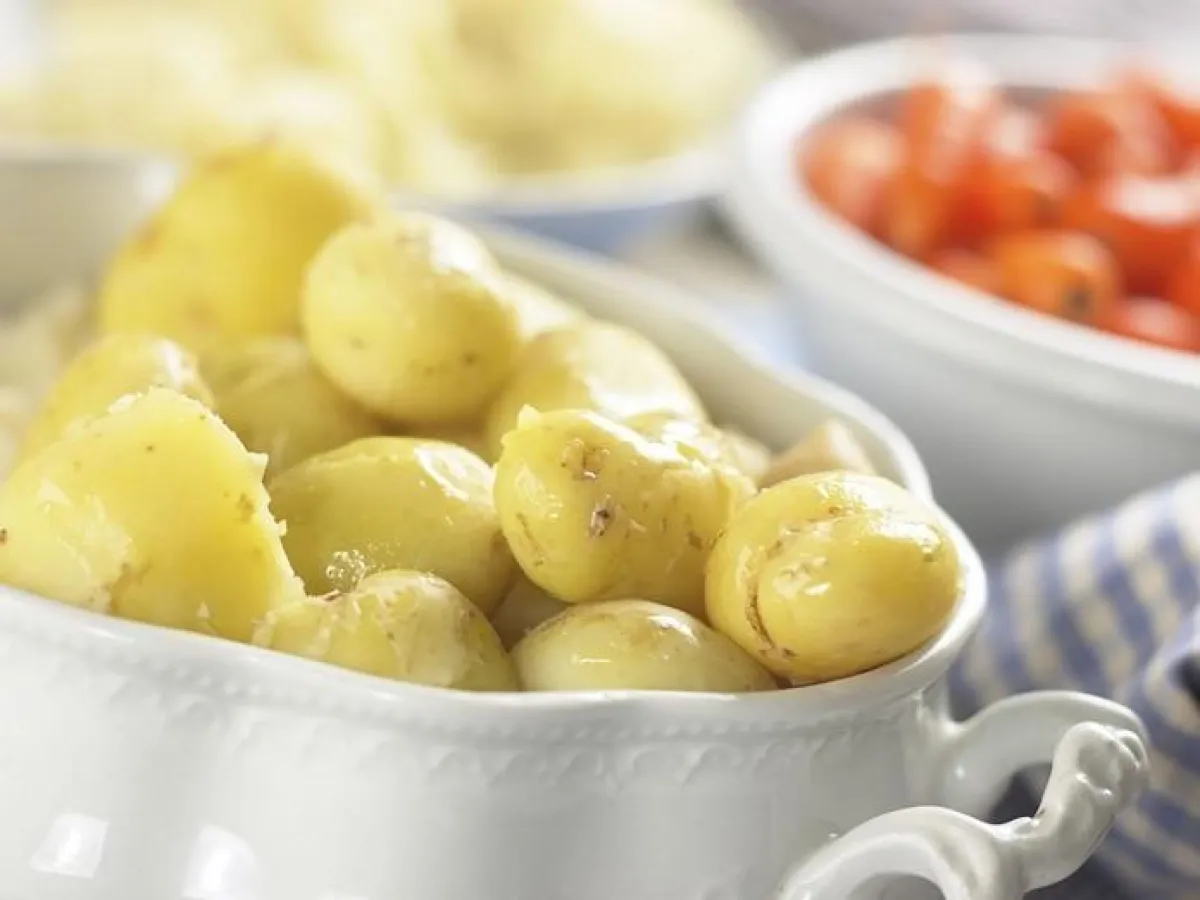 5- تضاف الكريما الطازجة الى البطاطس المسلوقة، مع القليل من زيت الزيتون والملح والفلفل الأسود.