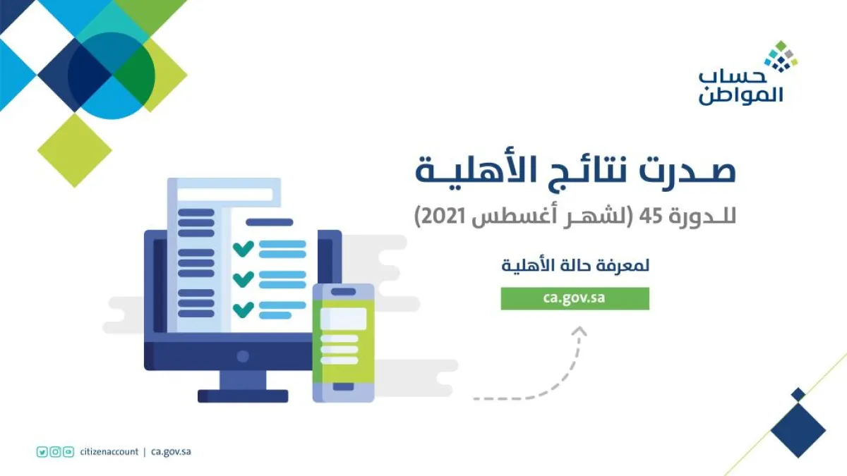 أعلن برنامج حساب المواطن صدور نتائج الأهلية للمستفيدين من الدعم، للدورة الـ45 لشهر أغسطس الجاري 2021م.