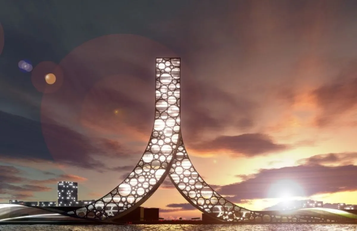 تم اقتراح المشروع لإقامة فندق ومركز رياضة ومركز مؤتمرات. ليتم تصور المبنى كمبنيين مدمجين في واحد. أول مبنى خرج من الماء كان مخصصاً لأنشطة جسدية، وأقيم فيه مركز للرياضات والثقافة المائية. المبنى الآخر الذي ظهر من الأرض كان مخصصاً لانشطة روحية وتنويرية، ويضم مركزاً للمؤتمرات مجهزاً بذوق رفيع.