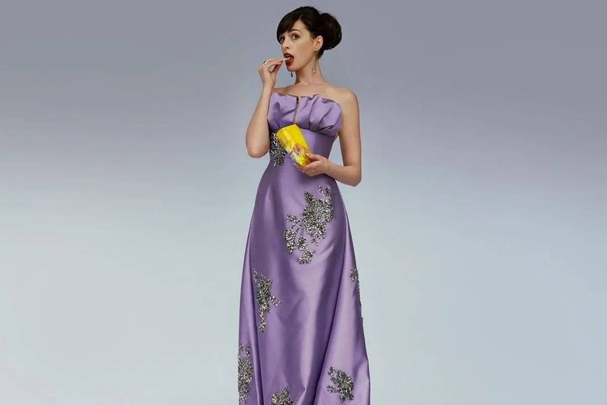 احتفالاً بمرور خمسة عشر عاماً على ولادة فيلم devil wears prada الذي كرس بطلته آن هاثواي أيقونة للموضة، نشرت النجمة صورة لها مرتدية فستاناً مطرزاً مصمماً خصيصاً بطلب منها من دار برادا. وقد صادفت الذكرى العشرين على فيلمها princess diaries أيضاً.