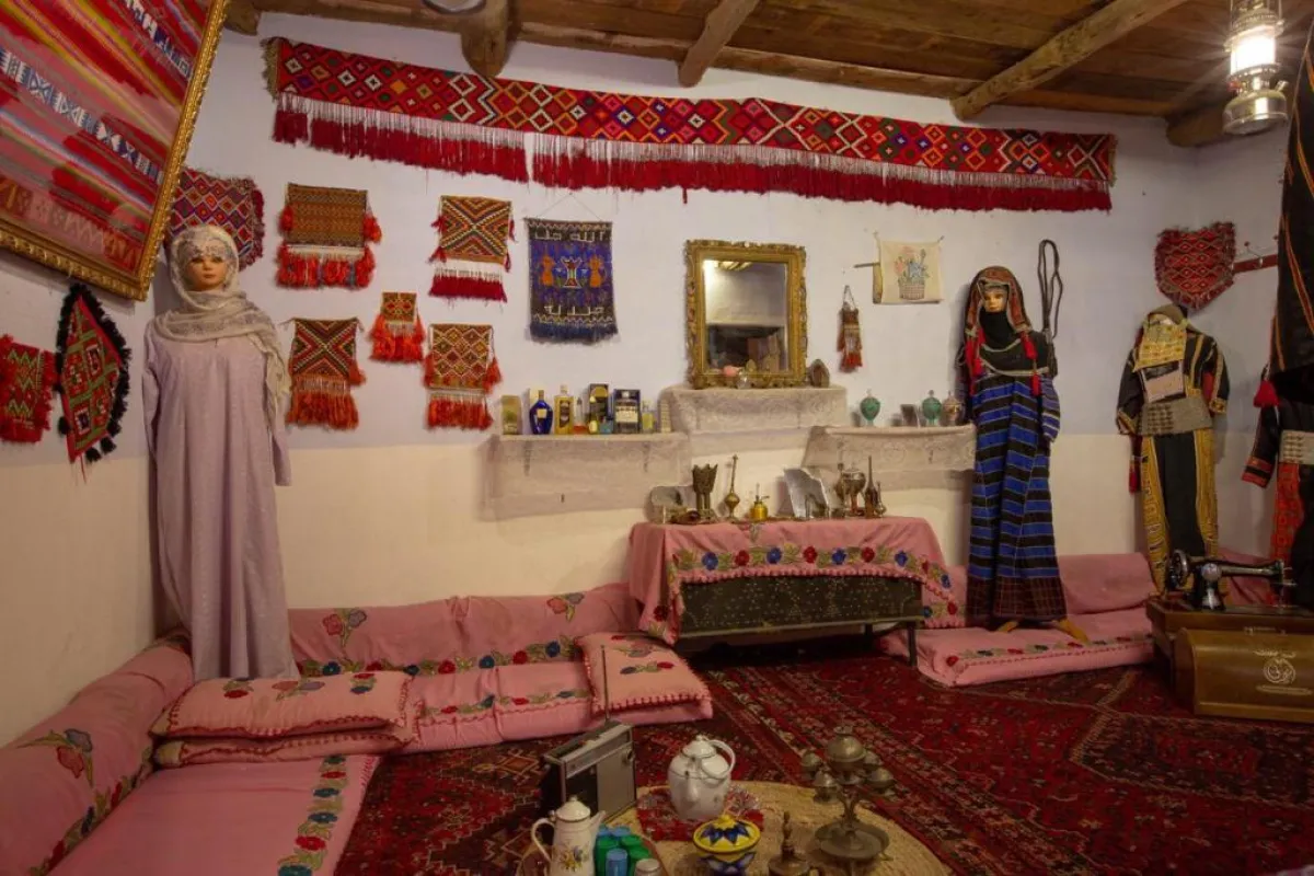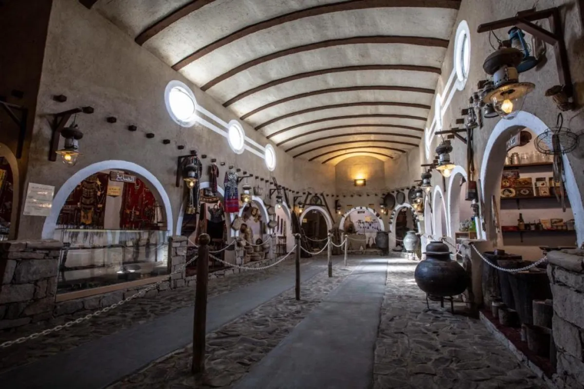 يتنقل الزائر في المتحف المقام على مساحة 6 آلاف متر مربع، ليجد بداخله أبنية من الصخور القديمة تخرج من أعلاها مزاريب المطر، ومداخل زُينت أبوابها الخشبية بالزراكيش الحديدية، لتضفي على المباني ملامح من الماضي وطرازه المعماري، إضافة إلى الفوانيس المعلقة على كل منزل لتضيء حارات المتحف.