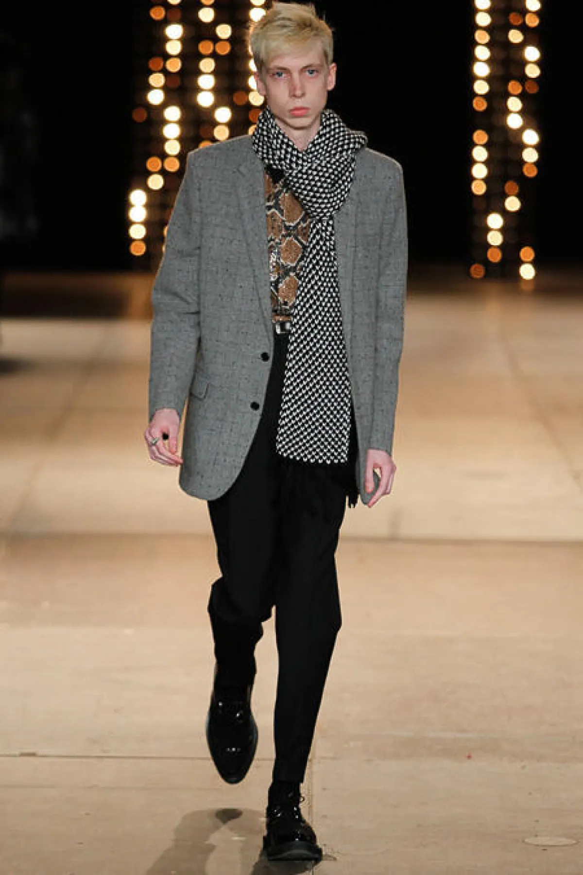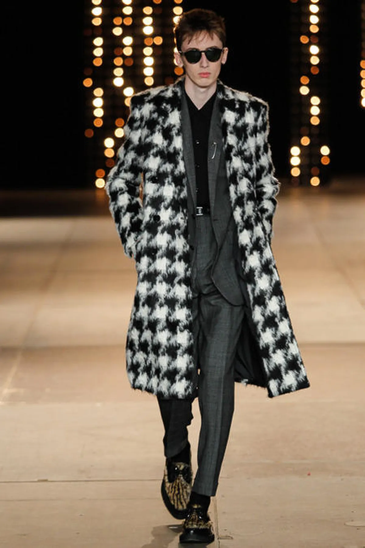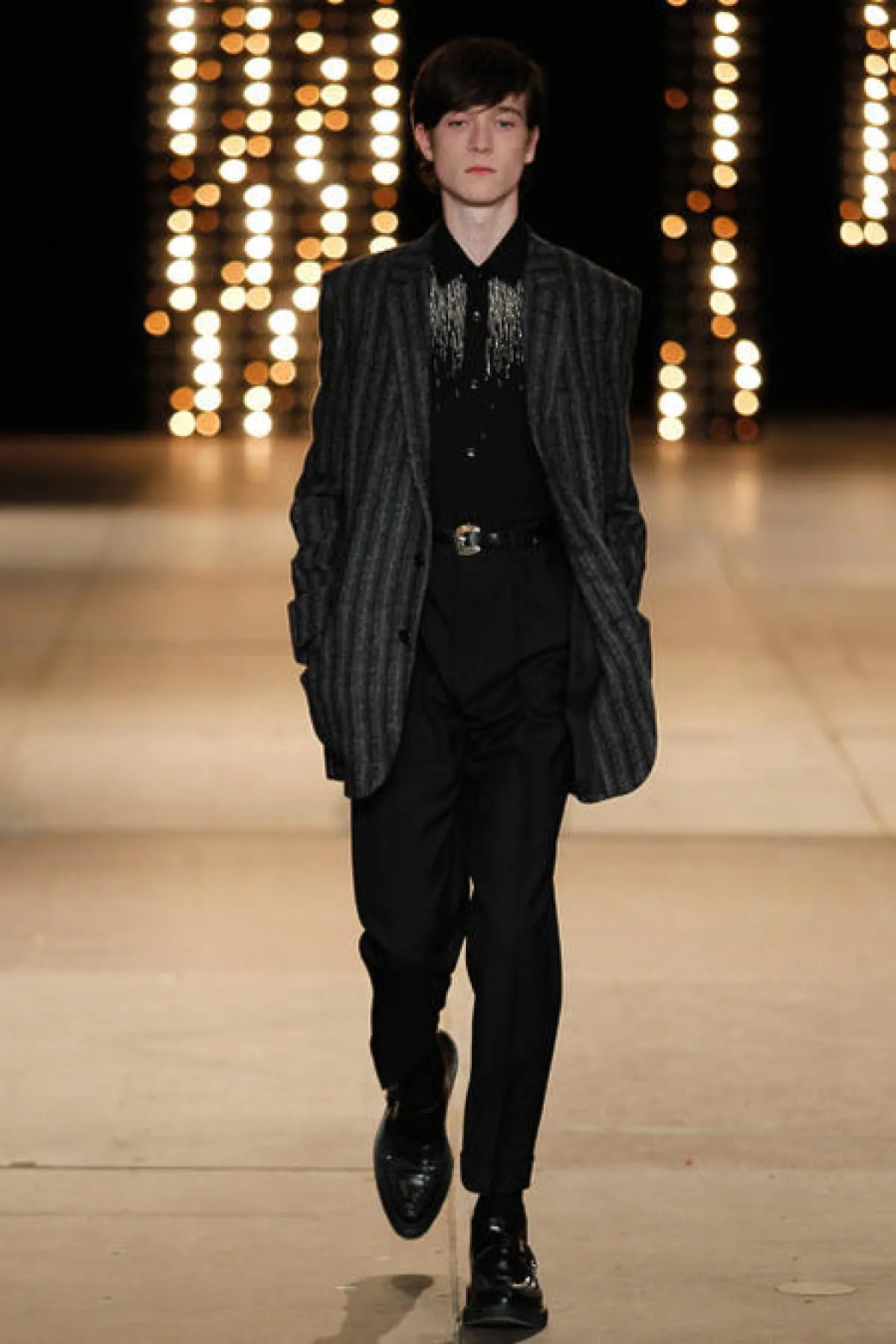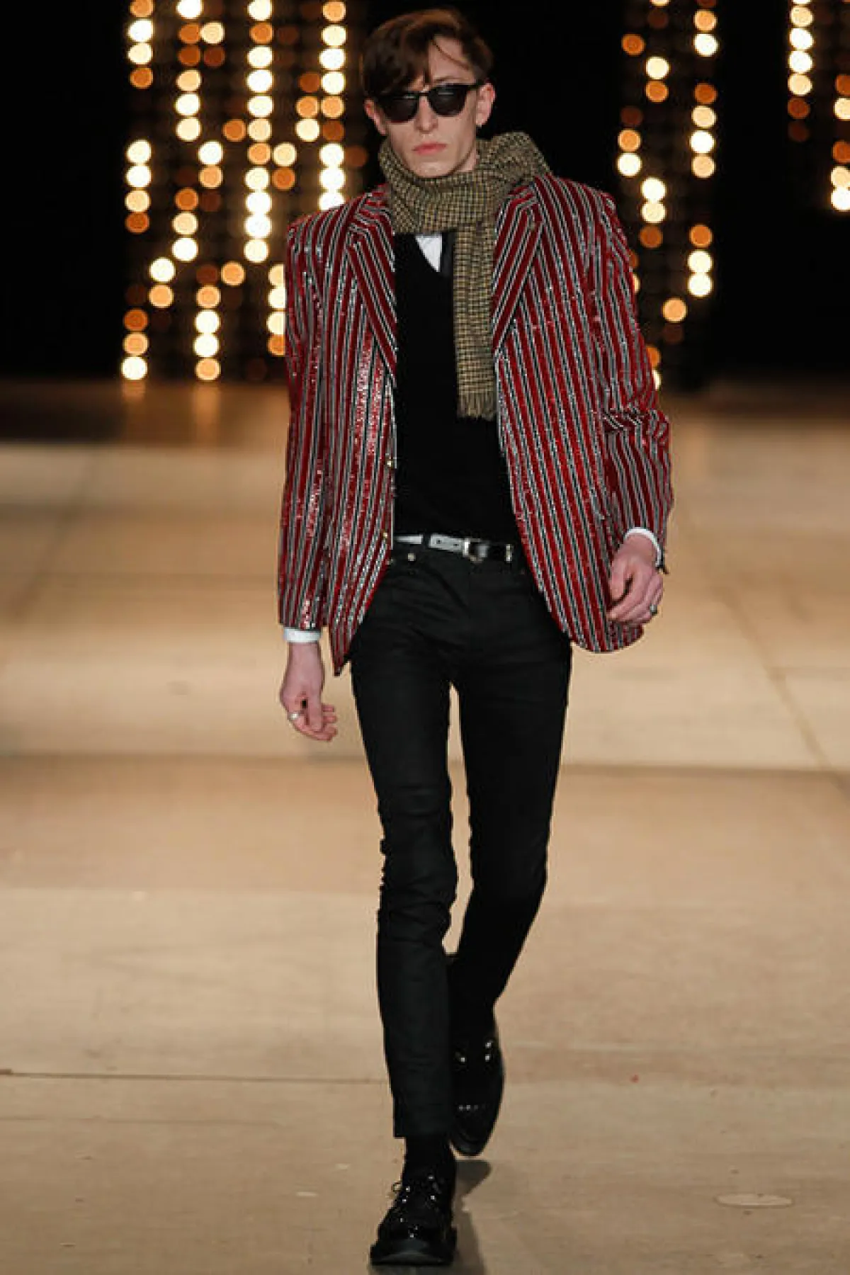 أضافت Salma Hayek لمستها الأنثوية الناعمة ببروش براق مثبت على ياقة البدلة مع أقراط ماسية لماعة الى جانب الحقيبة الصغيرة ذات اللون الفضي، وأكملت اللوك بأحمر شفاة بلون أحمر مشرق. أما بالنسبة للمجموعة المعروضة فقد احتوت على عدد من البدل الرسمية ذات الألوان الكلاسيكية ولم تخل من لمسة المصمم هادي سليمان الجريئة على طريقة نجوم الروك .
