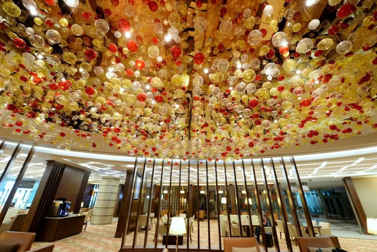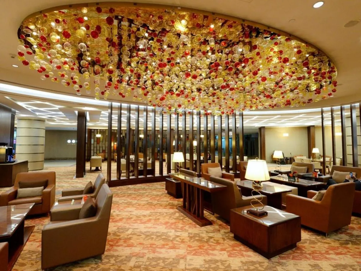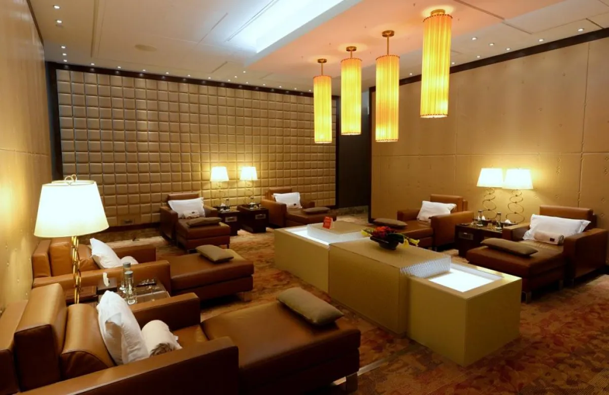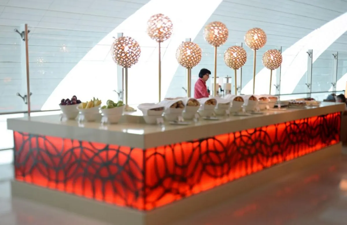 في الصالة المخصّصة لركاب الدرجة الأولى، يمكن اختيار واحدة من بين بقع ثلاث مخصّصة للجلوس، إذ تحظى كلّ منها بأجواء محدّدة، على غرار العربية والآسيوية والمغولية، أما الصالة المخصّصة لدرجة رجال الأعمال، فديكورها يرتكز حول العناصر الأربعة التالية: النار والماء والهواء والأرض.