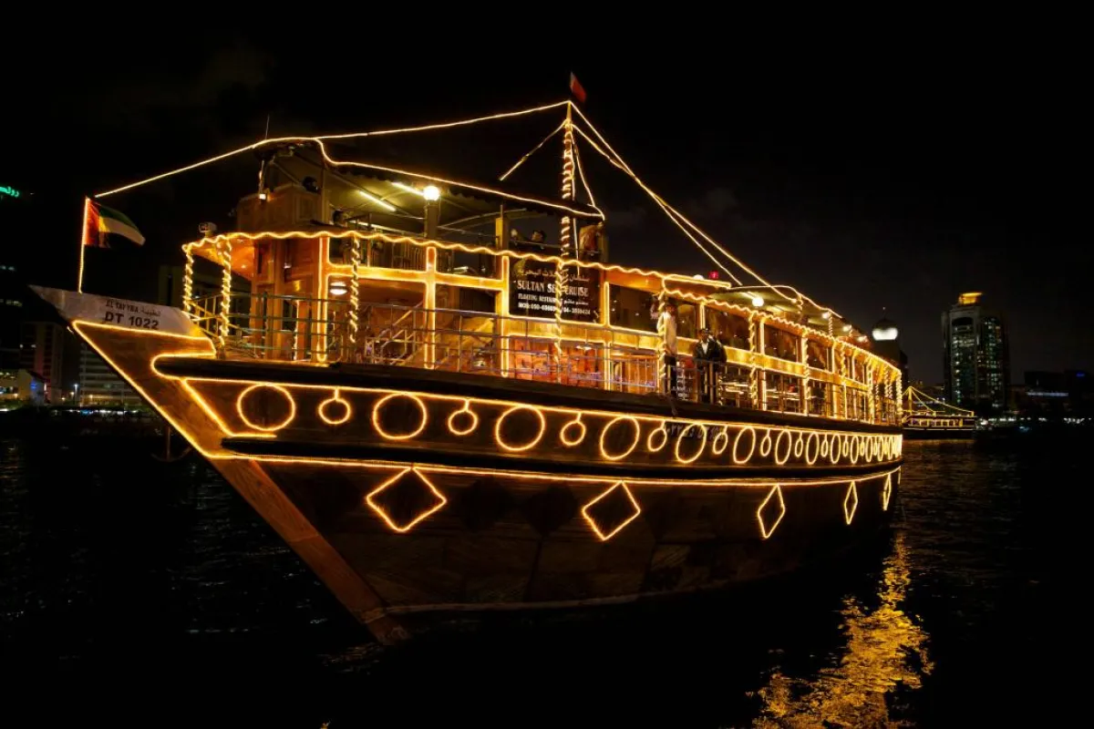 وتضفي المطاعم العائمة على خور دبي رونقاً آخر، إذ تشكل جزءاً مهماً من فعاليات شارع السيف، حيث تصطحب الزوار في جولة فوق مياه خور دبي للتمتع بإطلالة خلابة على معالم دبي السياحية، وتذوق أشهى وألذ المأكولات والأطباق، وقضاء أمسية لا تنسى تسودها الأجواء الرائعة.