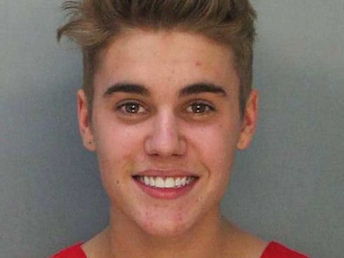 Bieber  ظهر مبتسماً في الصورة التي التقطتها الشرطة له، أثناء اعتقاله بتهمة القيادة تحت تأثير الكحول، بعدما كان يقود سيارة لامبورغيني، استأجرها من شارع "ميامي بيتش"، حوالى الساعة الرابعة من صباح يوم الخميس.