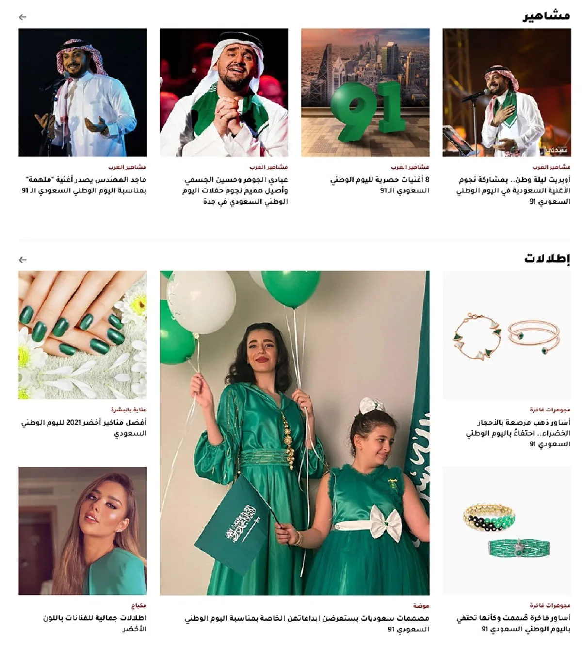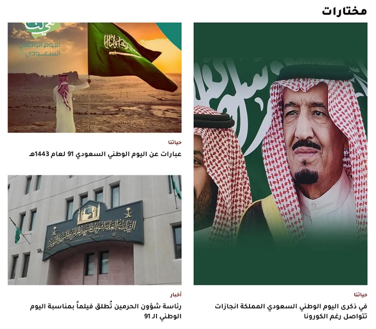 فتعالي معنا في هذه الجولة المقتضبة التي نعرفك من خلالها إلى أبرز مواضيع واجهتنا الرئيسية التي نشاركك وإياها احتفالات اليوم الوطني السعودي الـ91.
