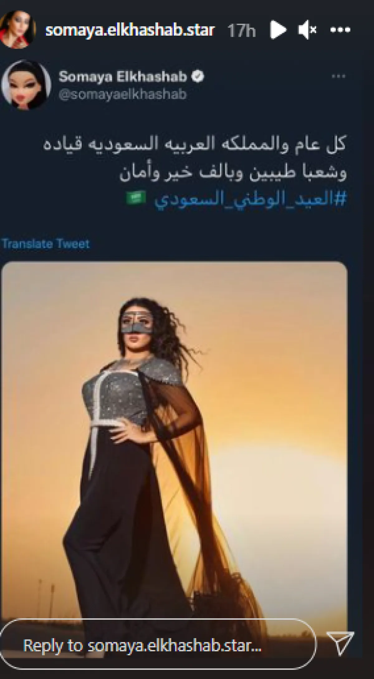 سمية الخشاب على انستا انستغرام تهنئ المملكة باليوم الوطني السعودي