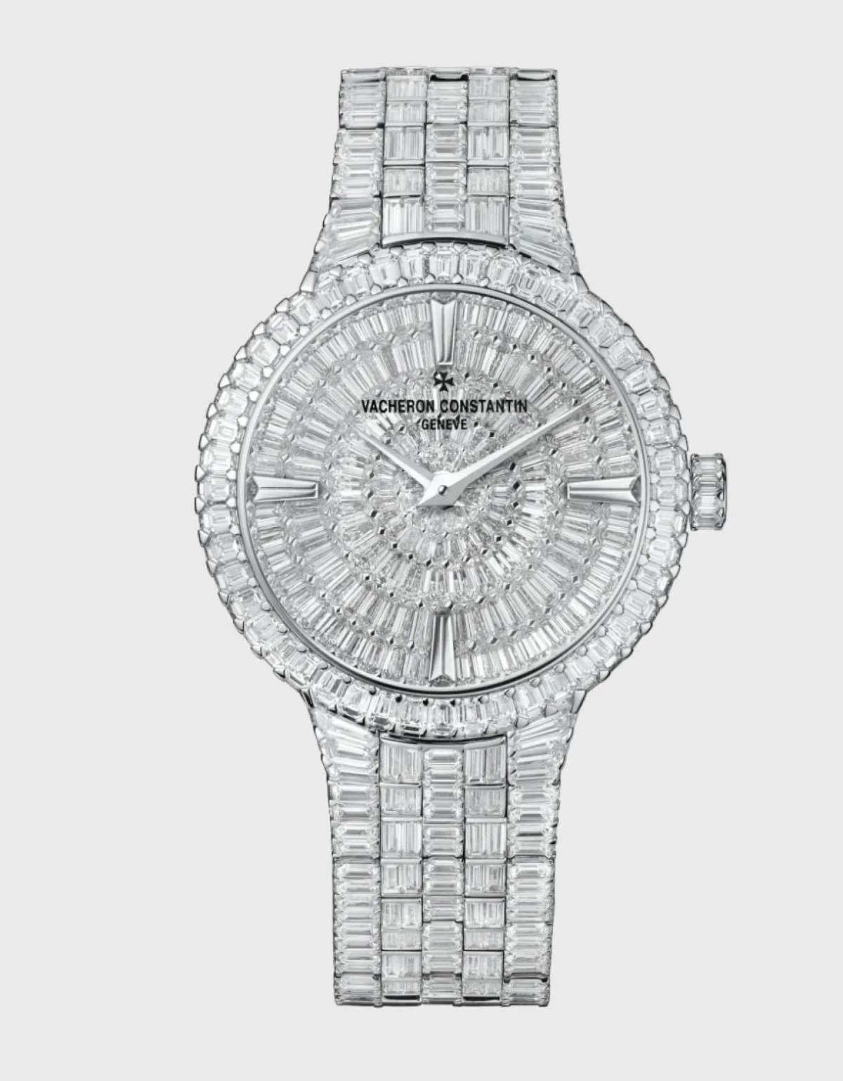 صُنعت ساعة تراديسيونل من فاشرون كونستانتين Vacheron constantin من الذهب الأبيض عيار 18 قيراطاً، ورُصّعت بـ 846 ماسة بقطع باغيت لتجسّد فن الترصيع بالماس ورُصّع السوار أيضاً بالألماس ليصمّم يدوياً بدقة؛ كي يتناسب مع المعصم على نحو مثالي، وتوفِّر الساعة ذات التعبئة اليدوية احتياطي طاقة يكفي قرابة 3 أيام، وتتميّز بلمسات استثنائية يمكن رؤيتها عبر خلفية العلبة المخرّمة.