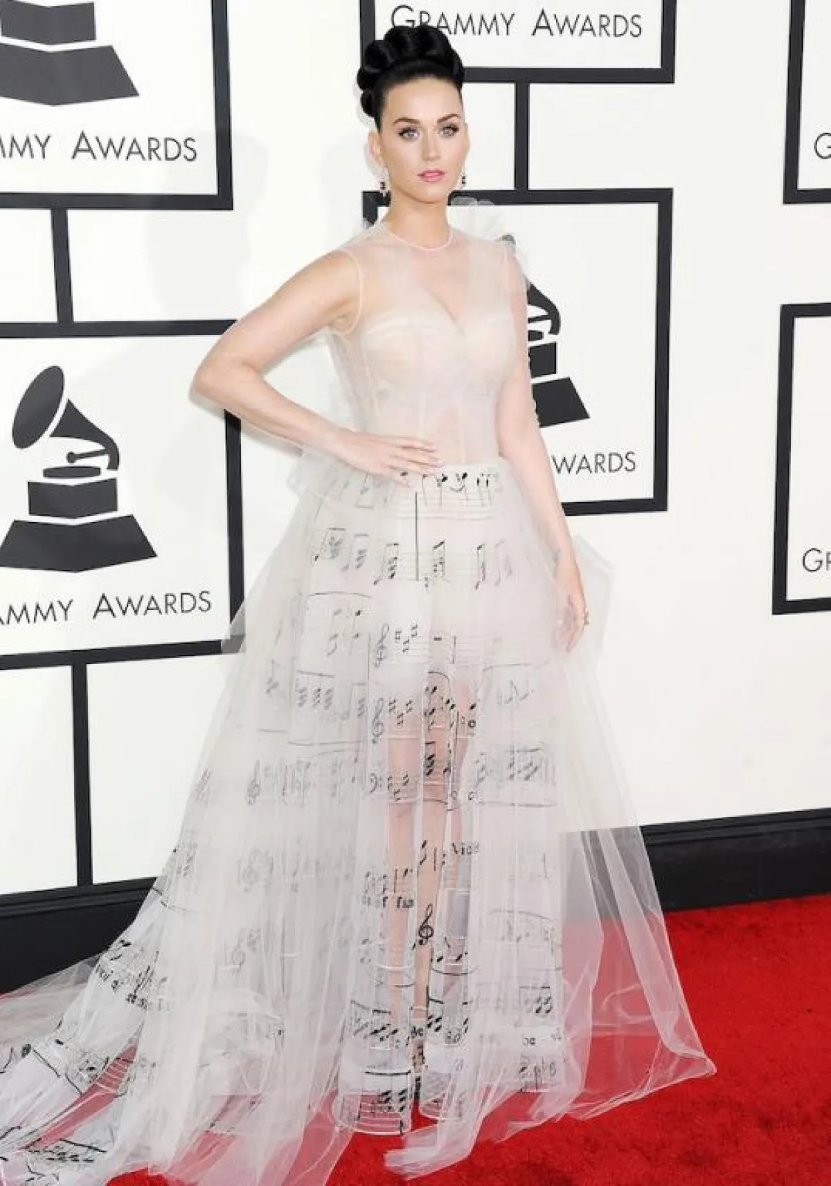 تابعت الفساتين البراقة ظهورها في هذا الحفل بعد أن شاهدناها بكثرة في حفلي "Golden Globes " و"Sag Awards"، فقد ظهرت في هذا الحفل في إطلالة النجمة الجميلة Taylor Swift بفستان أنيق براق أثار إعجاب المتابعين من Gucci، وإطلالة ذهبية أنيقة اختارتها كل من: Ciara، وChristine Teigen، كما كانت إطلالة Rita Ora بفستان لمّاع من Lanvin واحدة من أجمل الإطلالات في حفل البارحة. و من ناحية أخرى تكرر ظهور اللونين الأبيض واللحمي في إطلالات عديدة، منها: الإطلالة الساحرة التي اختارتها Beyonce، وإطلالة Paris Hilton بفستان أبيض طويل بتفاصيل جذابة، إلى جانب إطلالة الممثلة Anna Kendrick بفستان أنيق يميل إلى الرمادي من تصميم Azzaro. كما أبهرتنا إطلالة النجمة Katy Perry بفستان لحمي جميل منValentino ، وبعد نظرة متفحصة للفستان تظهر لنا النوتات الموسيقية المرسومة عليه، وتجدر الإشارة هنا إلى أن هذا الفستان عرض الأسبوع الماضي ضمن عروض أسبوع الموضة لأزياء الكوتور في باريس.