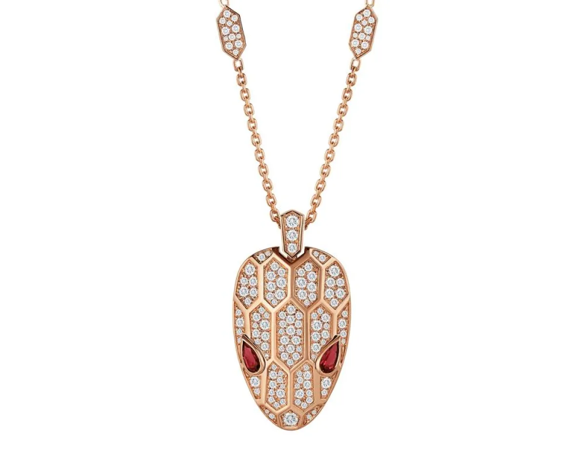 قدمت ماركة بلغاري Bvlgari العديد من التصاميم الجذابة لمجوهرات مستوحاة من الحيوانات، أعجبنا منها قلادة Serpenti التي جاءت على شكل رأس الأفعى بتصميم مرصع بالجواهر يتألق بالبريق والرقي.
