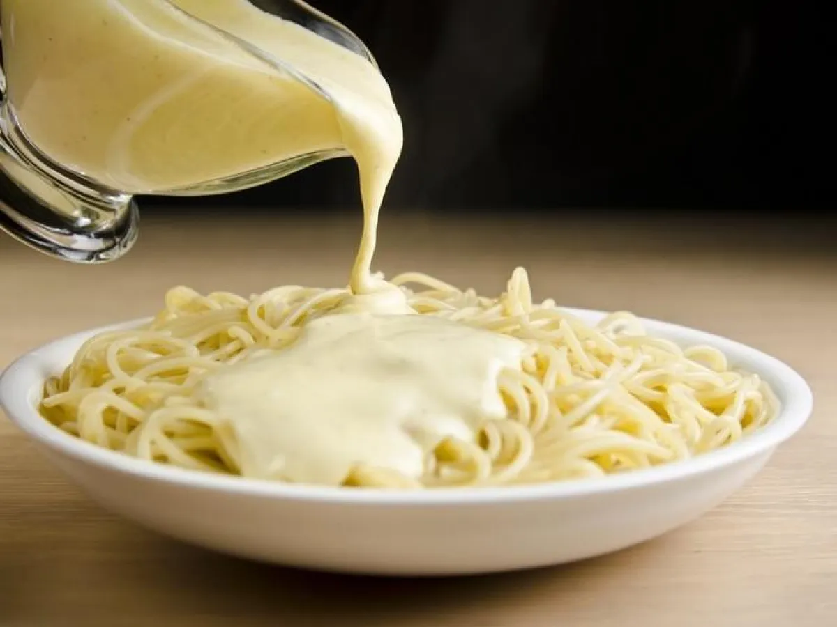 3- ثم، يضاف الحليب مع التحريك المستمرّ، حتى يشتدّ الخليط بدون كتل؛ وعندها تصبح صلصة البشاميل جاهزة للاستعمال، في المعكرونة وغيرها من الأطباق.