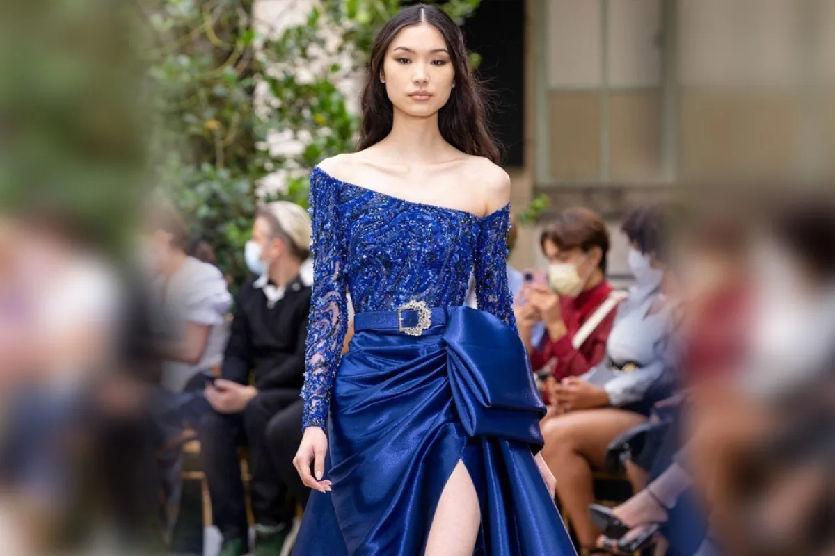 فستان ساتان باللون الأزرق من زهير مراد Zuhair Murad