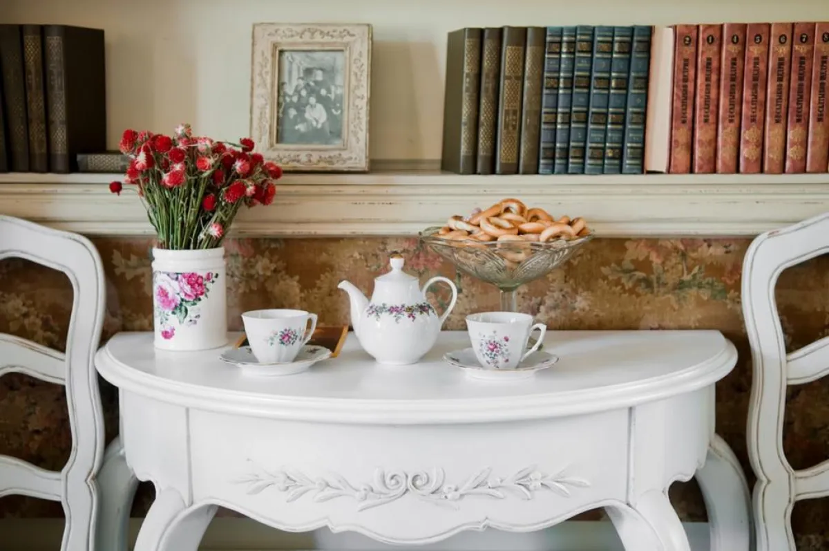 ـ وزّعي الطاولات الصغيرة على جوانب الجلسة لتسهيل وضع أكواب الشاي عليها.