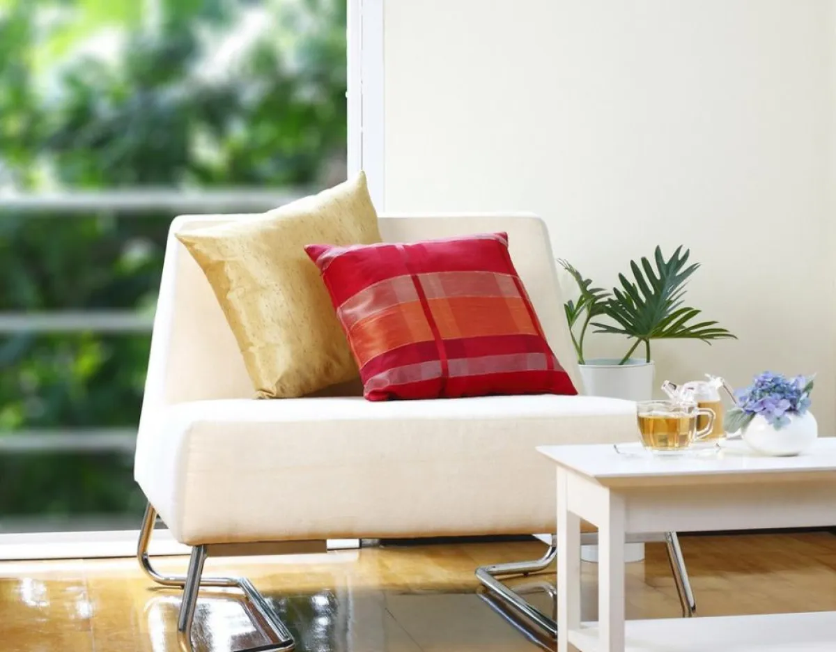 ـ لا تكترثي لألوان هذه الجلسة، لأنّ بإمكانها أن تكون مطليّة باللون الأبيض وتتخلّلها لمسات دافئة.