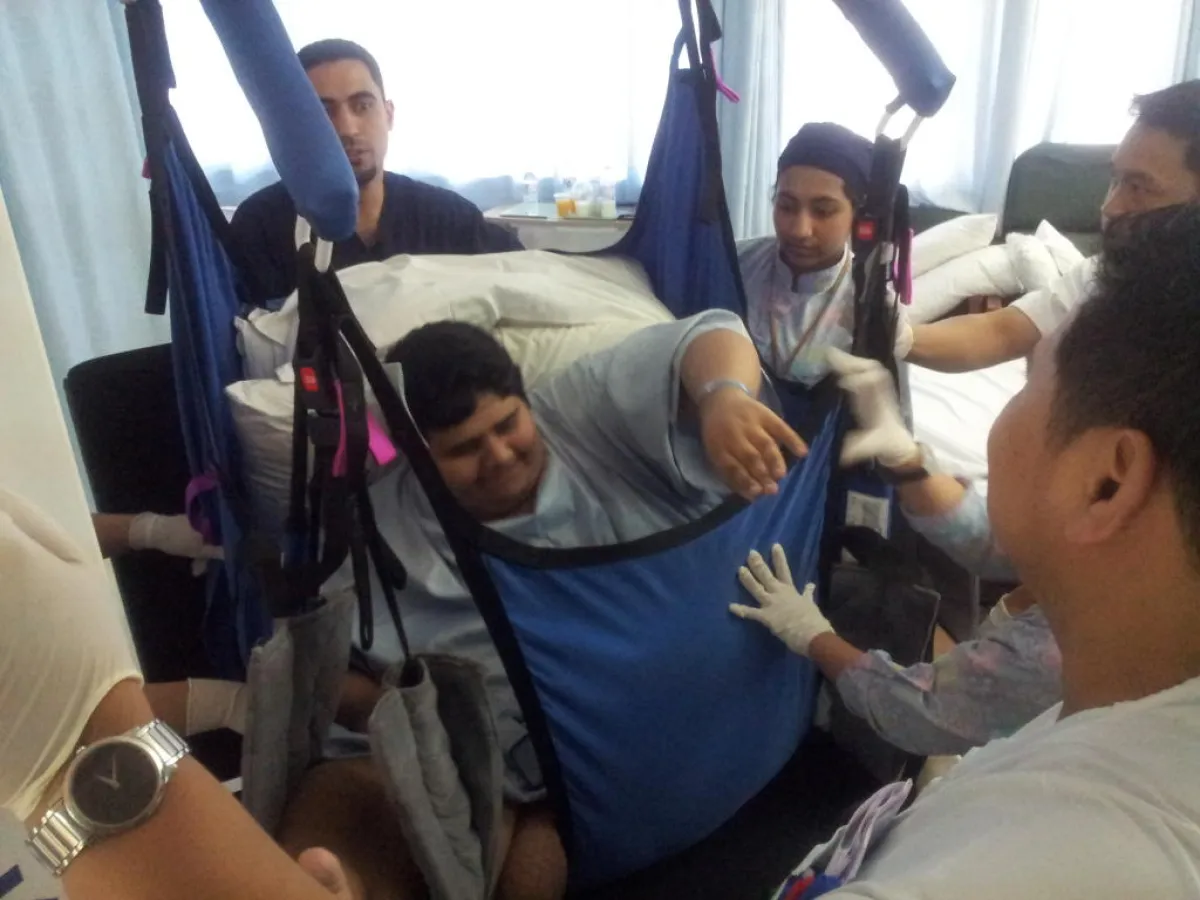 أثناء حواره مع «سيدتي»، قال المشرف على حالة شاعري، عائض ربيعان القحطاني أستاذ واستشاري جراحة المناظير والسمنة، المشرف على كرسي الشيخ الشهري للسمنة، جامعة الملك سعود، بأنه، وبناء على وصفة طبيب العلاج الطبيعي الذي يشرف على خالد تم تجهيز الكرسي الضخم، والذي يعد أكبر كرسي علاج في العالم، ليتمكن قاهر السمنة من الجلوس عليه بمساعدة رافعة متحركة، والسير به في المرحلة القادمة التي تتضمن تأهيله على القعود بعد الجراحة.