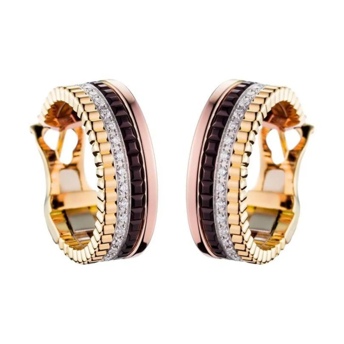 لإطلالة أنثوية جذابة، تجمع بين العصرية والفخامة في ذات الوقت، يُمكنكِ الاستعانة بأقراط Quatre Classique Hoop من ماركة بوشرون Boucheron. صُممت الأقراط بتصميم حلقي جذاب وأنيق من الذهب الأصفر والأبيض والوردي والبني، عيار 18 قيراطًا، وجاءت مُرصعة بـ50 ماسة بوزن 0.36 قيراط. تابعي المزيد مجوهرات فخمة لحفلة رأس السنة 2022