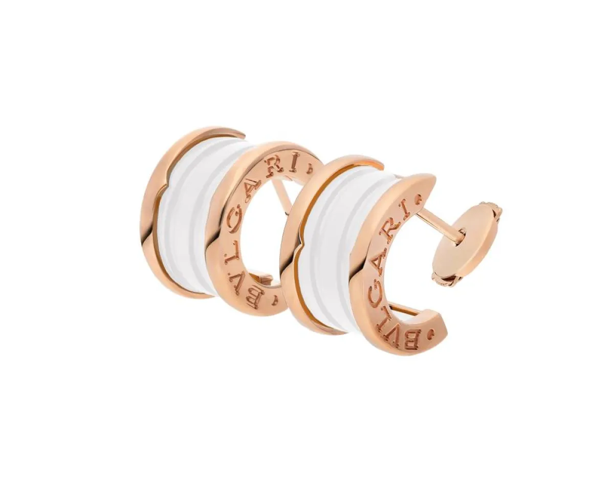 قدمت ماركة بلغاري Bvlgari العديد من التصاميم العملية والعصرية لأقراط ذهب موضة 2022، أعجبنا منها هذا التصميم الراقي لأقراط B.zero1 المستوحاة من المدرج الأكثر شهرة في العالم "الكولوسيوم" في روما. جاءت الأقراط بتصميم دائرة أنيق، من الذهب الوردي عيار 18 قيراطًا، ومُرصعة بالسيراميك الأبيض، لإطلالة ناعمة وراقية تناسب العمل أو الجامعة.