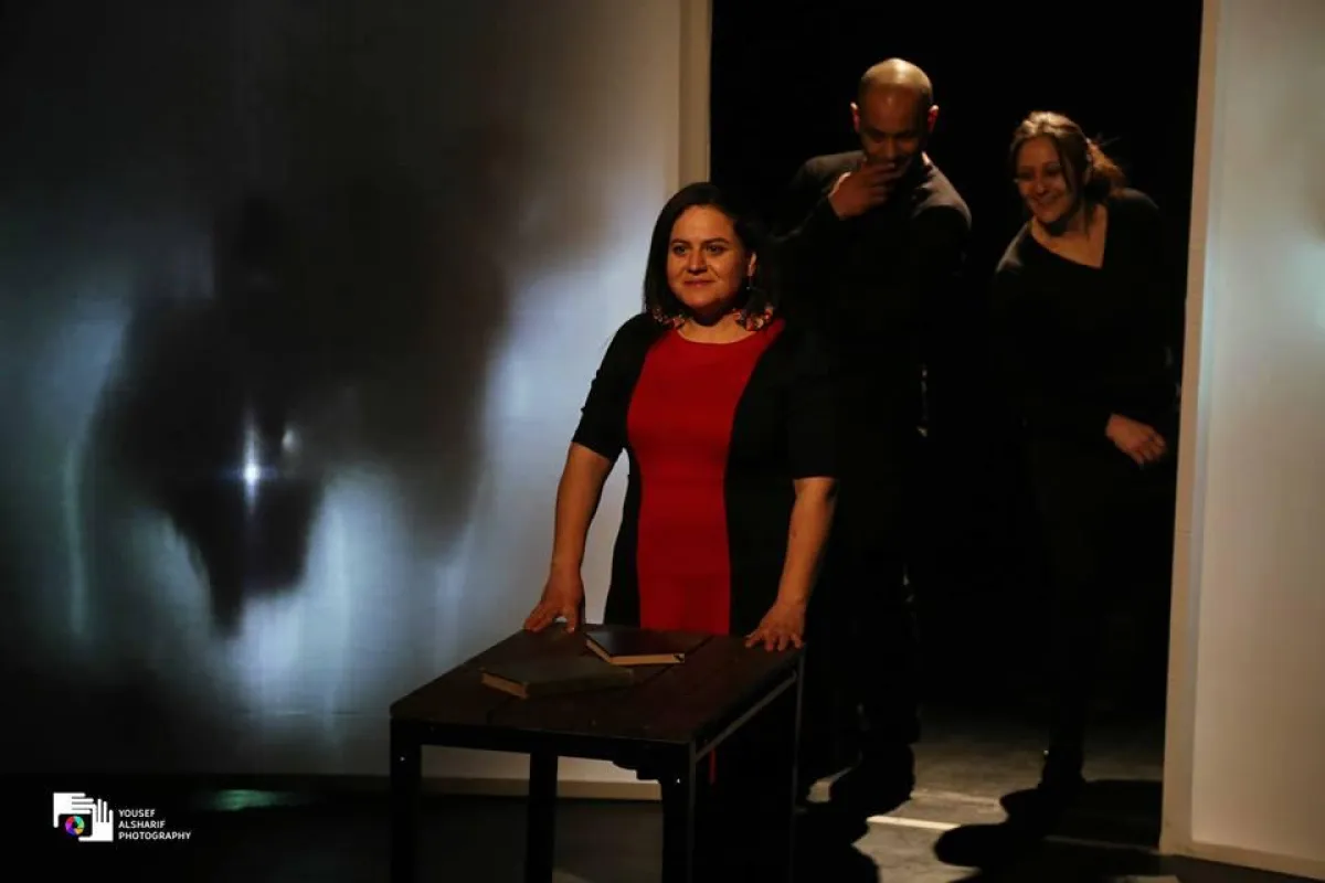 والممثلون الفلسطينيون الذين قاموا بأداء الأدوار هم: ميرنا سخلة، ريم تلحمي، رائدة أبو غزالة، وأديب الصفدي، ويعتبرون من وراد المسرح الفلسطيني، خاصة الفنانة والمطربة الرائعة ذات الصوت الشجي ريم تلحمي.