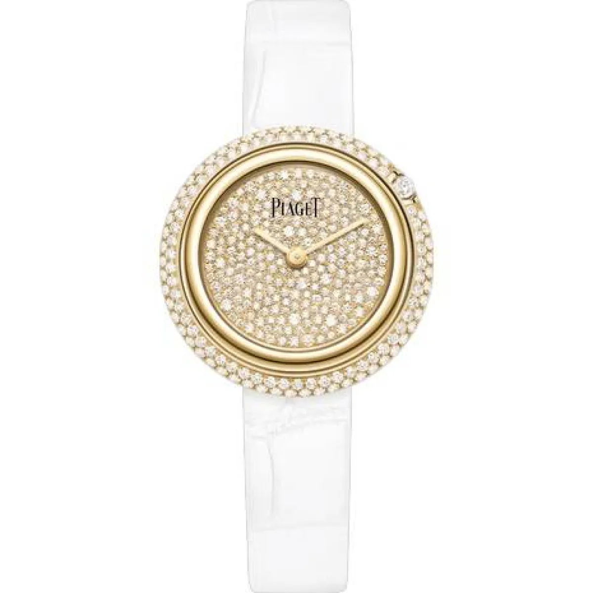 لإطلالة أكثر نعومة ورقيّ، قدمت ماركة بياجيه Piaget هذا الإصدار في مجموعة Possession، لساعة صُممت من علبة دائرية ذات مينا مُرصعة بالألماس الأبيض والأصفر.