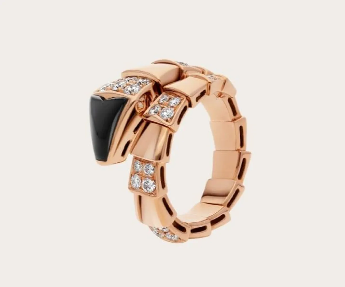 تكريماً لحيوانها الروحي تأسر بولغاري Bvlgari قوة الإغواء في خاتم Serpenti Viper ، الذي يخفي الجاذبية والإغراء وتلتف هذه الجوهرة المتطورة والرائعة حول الإصبع لتتألق بجمال الالتواء المميز للثعبان، وقد صمم الخاتم بالذهب الوردي عيار 18 قيراطاً ومرصع بحجر الأونيكس الأسود مع الماسات المستديرة اللامعة على شكل فصوص مُتلفة حول الخاتم .