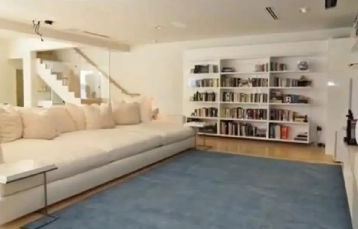 وبعد يوم عمل طويل، تستلقي المالكة على الأريكة الضخمة التي تؤثث غرفة المعيشة لتستمتع بقراءة أحد الكتب الموجودة في المكتبة الضخمة المثبتة إلى الجدار الجانبيّ للغرفة.