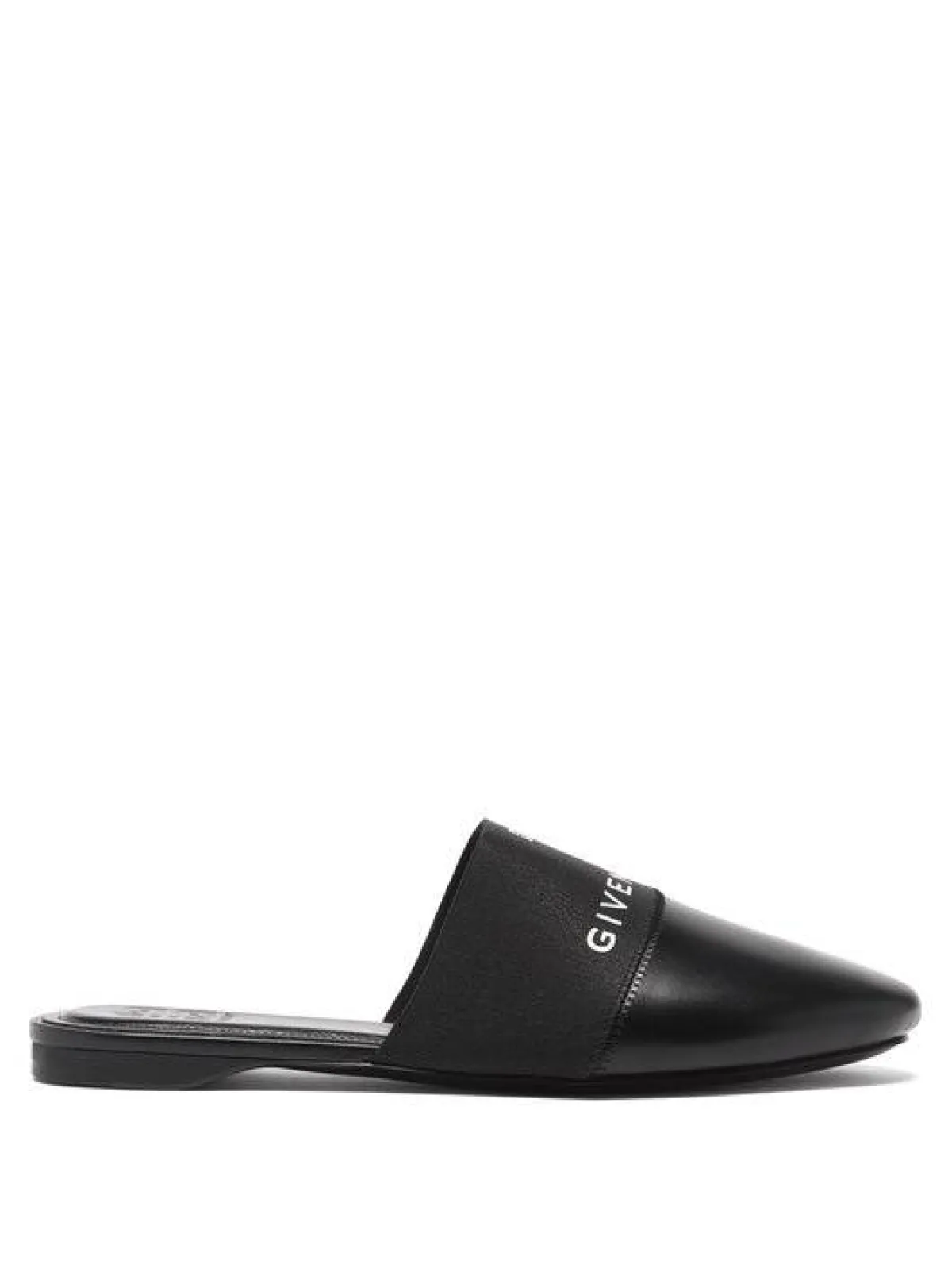إذا كنت من عاشقات الخيارات الكلاسيكية فإن هذا المول من جيفنشي Givenchy سيكون خياراً مناسباً بالنسبة إليك. هذا الحذاء مصنوع من الجلد والقماش الأسود طُبع عليه اسم العلامة باللون الأبيض.