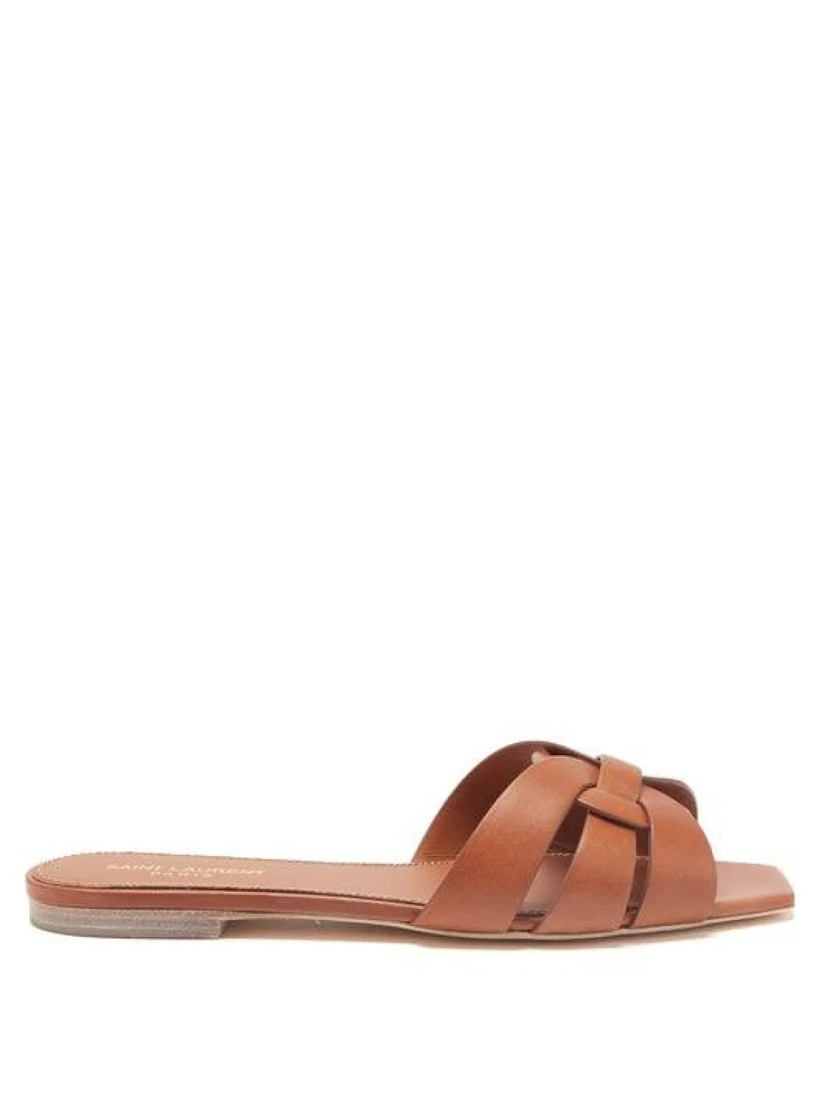 من علامة سان لوران Saint Laurent اخترنا لك هذا الحذاء المسطّح المصنوع من الجلد الطبيعي بلون الهافان. وهو حذاء يمكنك أن تنسّقيه مع مختلف إطلالاتك.