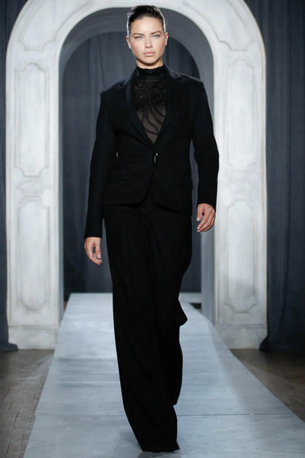 انتهى اليوم الثاني من أيام أسبوع الموضة في نيويورك حيث قدم المصمم الأمريكي Jason Wu مجموعته لخريف وشتاء 2014 البارحة وسط ترقب و انتظار من متابعي الموضة حول العالم ، إذ يعتر هذا العرض بمثابة البداية غير الرسمية لأسبوع الموضة في نيويورك. إفتتحت العرض عارضة الأزياء البرازيلية Adriana Lima ببدلة أنيقة باللون الأسود لتدخلنا الى الأجواء الدرامية التي طغت على المجموعة .