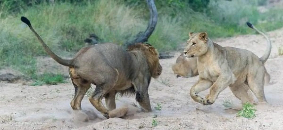 وأضافت الصحيفة أن المشكلة بدأت حين تحرك الأسد الأب ليلاعب الصغار، وفجأة زاد حماسة اللعب وتعرض شبلان لخشونة زائدة من قبل الأب، وهنا ثارت الأم ووبخت الأب بعنف، فحدثت معركة خفيفة قصيرة بينهما، حاول فيها الأسد الأب الحفاظ على كرامته ومكانته كحاكم آمر للقطيع.