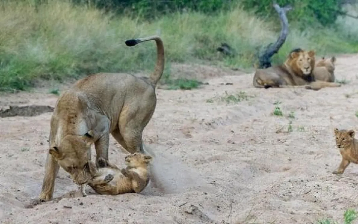 وجهت لبؤة في حديقة كروجر بجنوب إفريقيا، توبيخاً عنيفاً للأسد الأب، بسبب خشونته في اللعب مع أشبالهما. وذكرت صحيفة "الديلي ميل" البريطانية أن مدير حديقة كروجر الوطنية بجنوب إفريقيا كان يراقب بالكاميرا، قطيعاً مكوناً من أسد وثلاث لبؤات وأربعة أشبال، حين تحركوا إلى عرينهم بجوار النهر للاسترخاء واللعب.