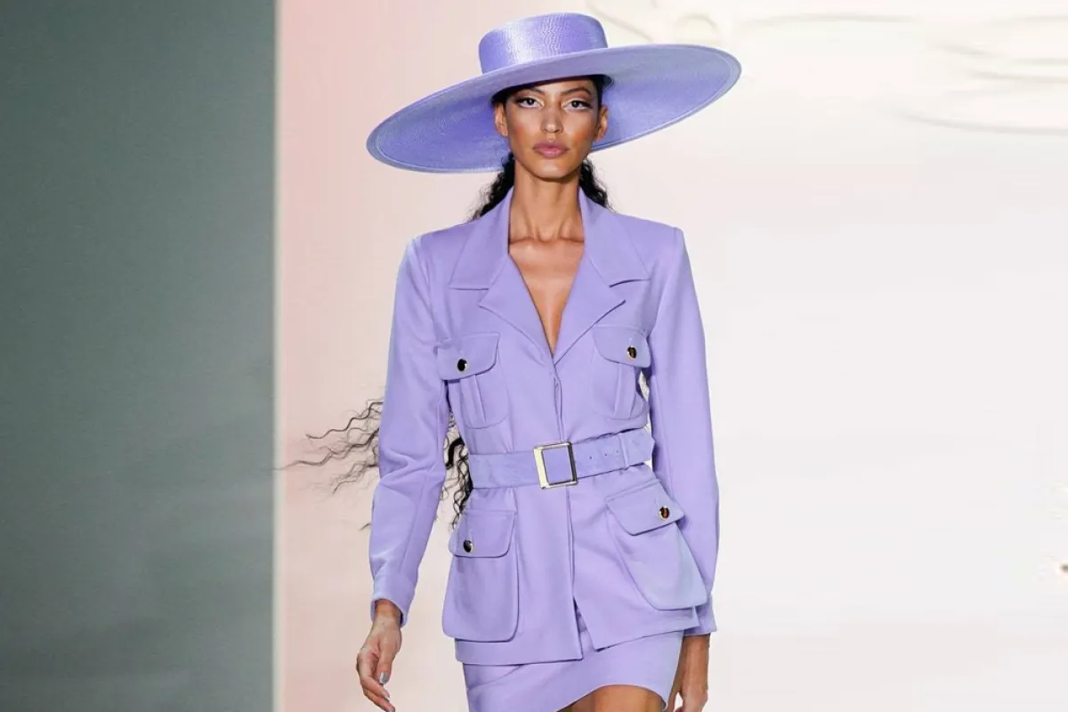 أما علامة سيرجيو هادسون Sergio Hudson فاختارت درجة البنفسجي الفاتح لتقدّم بدلة أنيقة مؤلفة من سترة تزيّنها جيوب عريضة وحزام خصر، وتنورة بقصّة مستقيمة. وقد زيّنت الإطلالة قبعة كبيرة وحذاء بحبال من اللون نفسه.