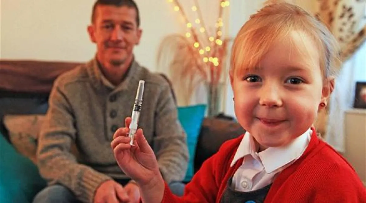 أنقذت طفلة بريطانيَّة لم تتجاوز الخامسة من العمر والدها من الموت عندما حقنته بالأنسولين بعد أن سقط مغشياً عليه إثر تعرُّضه لنوبة حادة بسبب مرض السكري.