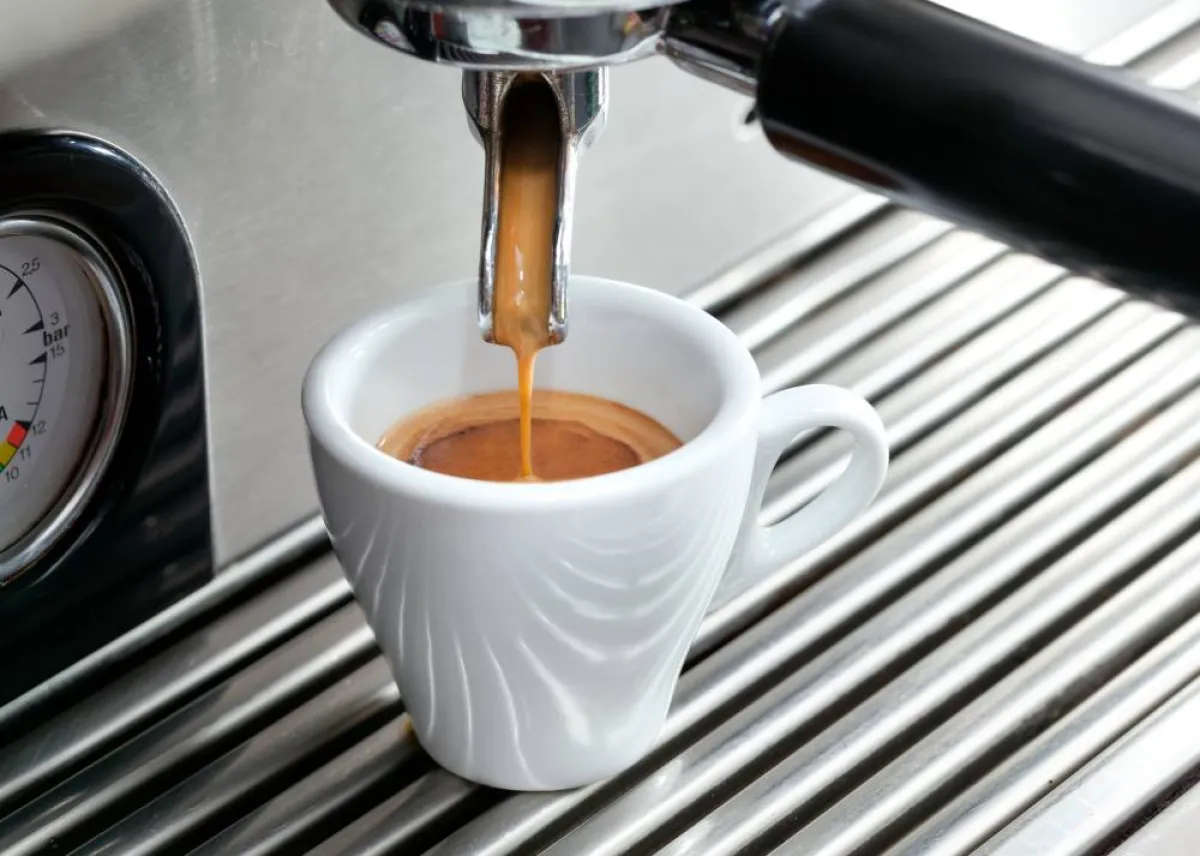 تصدر الآلة اللامعة خلف المنضدة الرخامية قعقعة وهسهسة، بينما يقوم صانع القهوة بدكّ القهوة المطحونة في فلتر القهوة، ثم ينقر فوقها في مكانها وتضغط على مفتاح لإطلاق الماء شبه المغلي من خلاله.