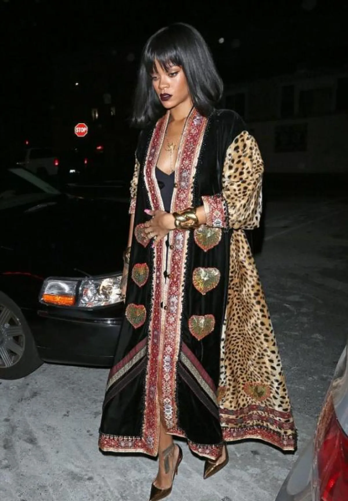وشوهدت Rihanna داخل متجر MONCLER الذي يتخصص في تصميم المعاطف الشتوية في بيفرلي هيلز ترتدي فستاناً أبيض طويل يظهر جمال جسدها، كما وضعت عقداً باللغة العربيّة كانت قد ظهرت به منذ اسبوع يحمل كلمة أو اسم "جيريمي" دون معرفة إن كان يحمل معنى معينا لها.