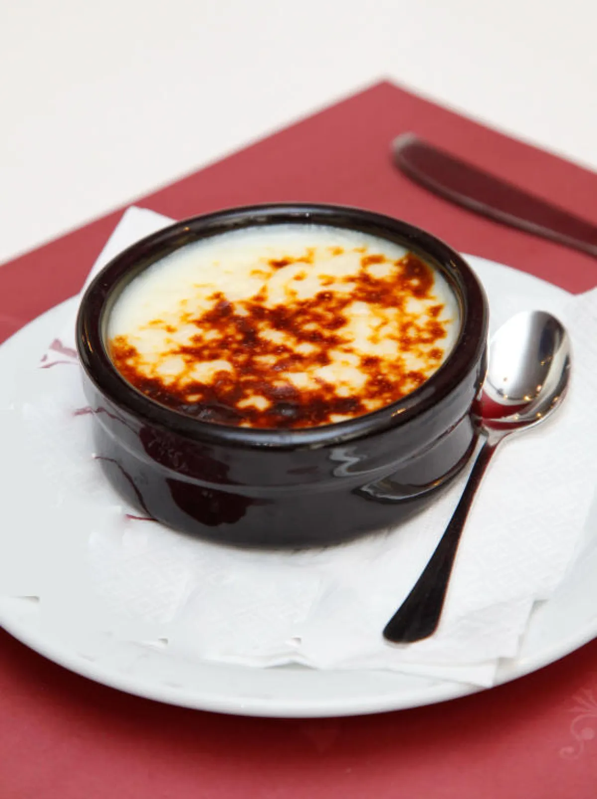 يسكب هذا الخليط في أطباق التقديم، والتي تزيّن بالقرفة أو جوز الهند، كما يمكن وضعها في الطبقة الثانية من الفرن، لتلميع أسطحها.