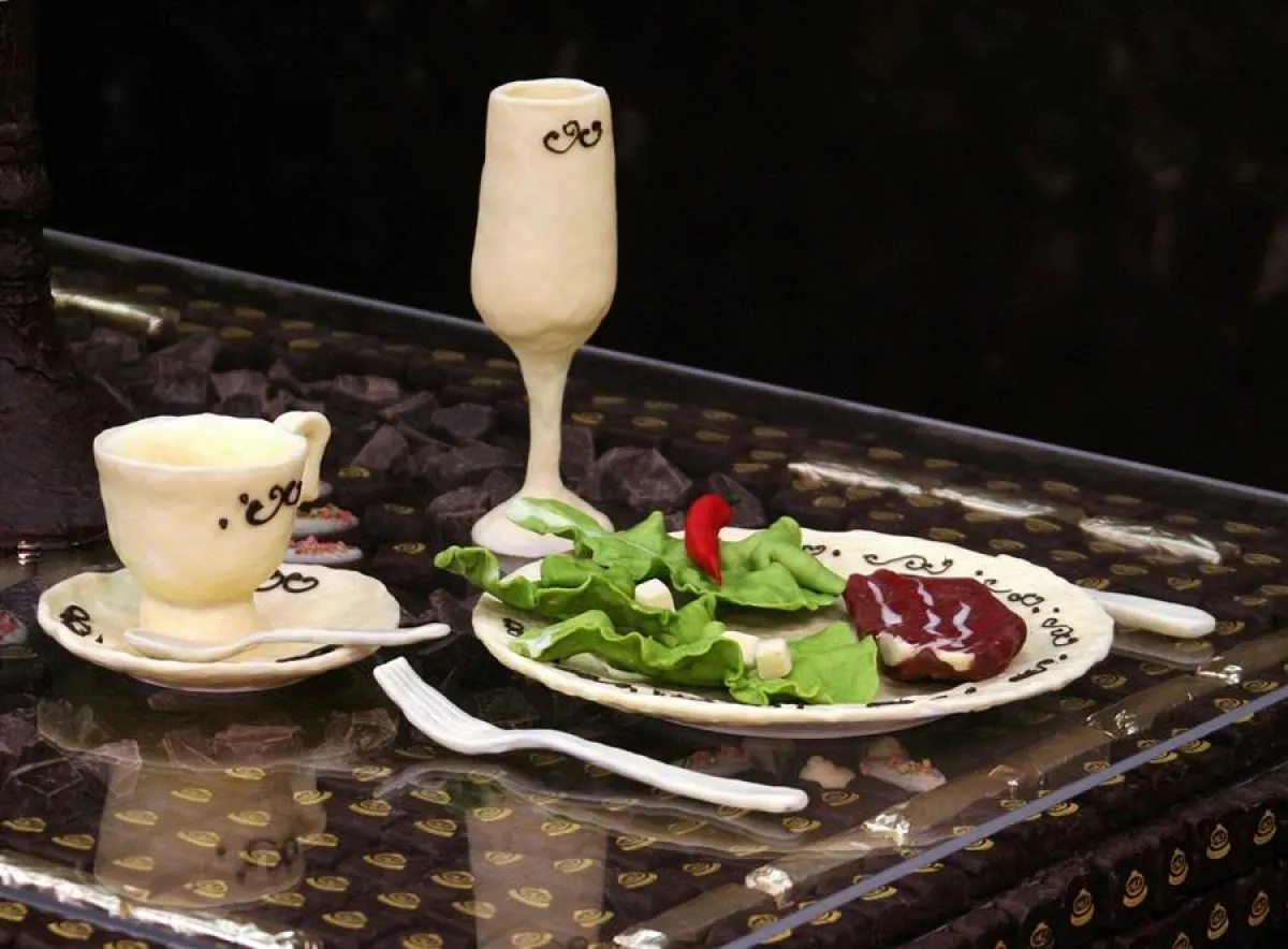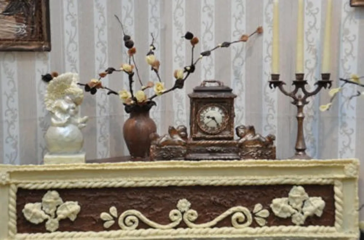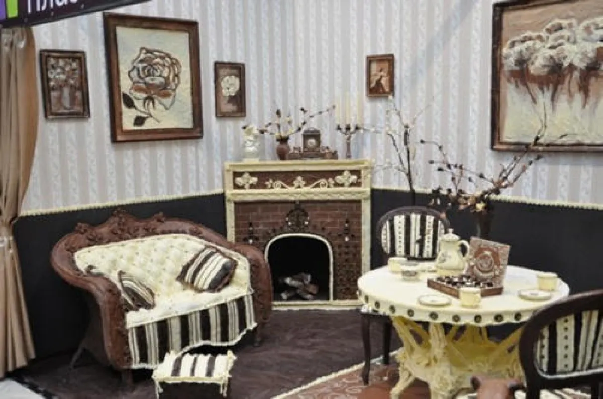احتفل أحد متاجر في مدينة كالينينغراد الشهيرة في روسيا بالذكرى الخامسة لتأسيسه بطريقة خاصة، حيث أسندت إدارته إلى فنانة النحت الشهيرة (إلينا كلايمنت )أن تقوم ببناء غرفة كاملة من الشوكولا الخالصة.