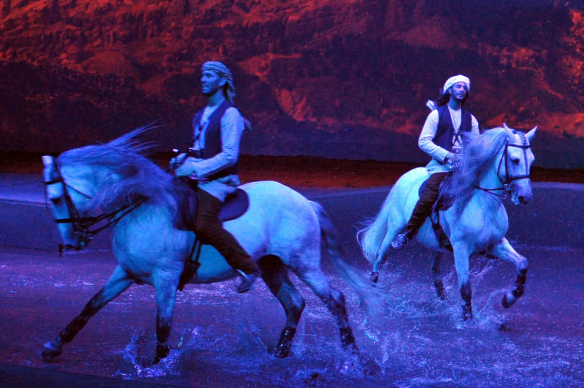 يضم عرض كفاليا 50 حصاناً تتحرك بحرية، إلى جانب 50 فناناً من المبدعين في مجال الأكروبات، وفنون العرض. وتعود الأحصنة إلى 11 سلالة عريقة من أنحاء العالم أجمع.