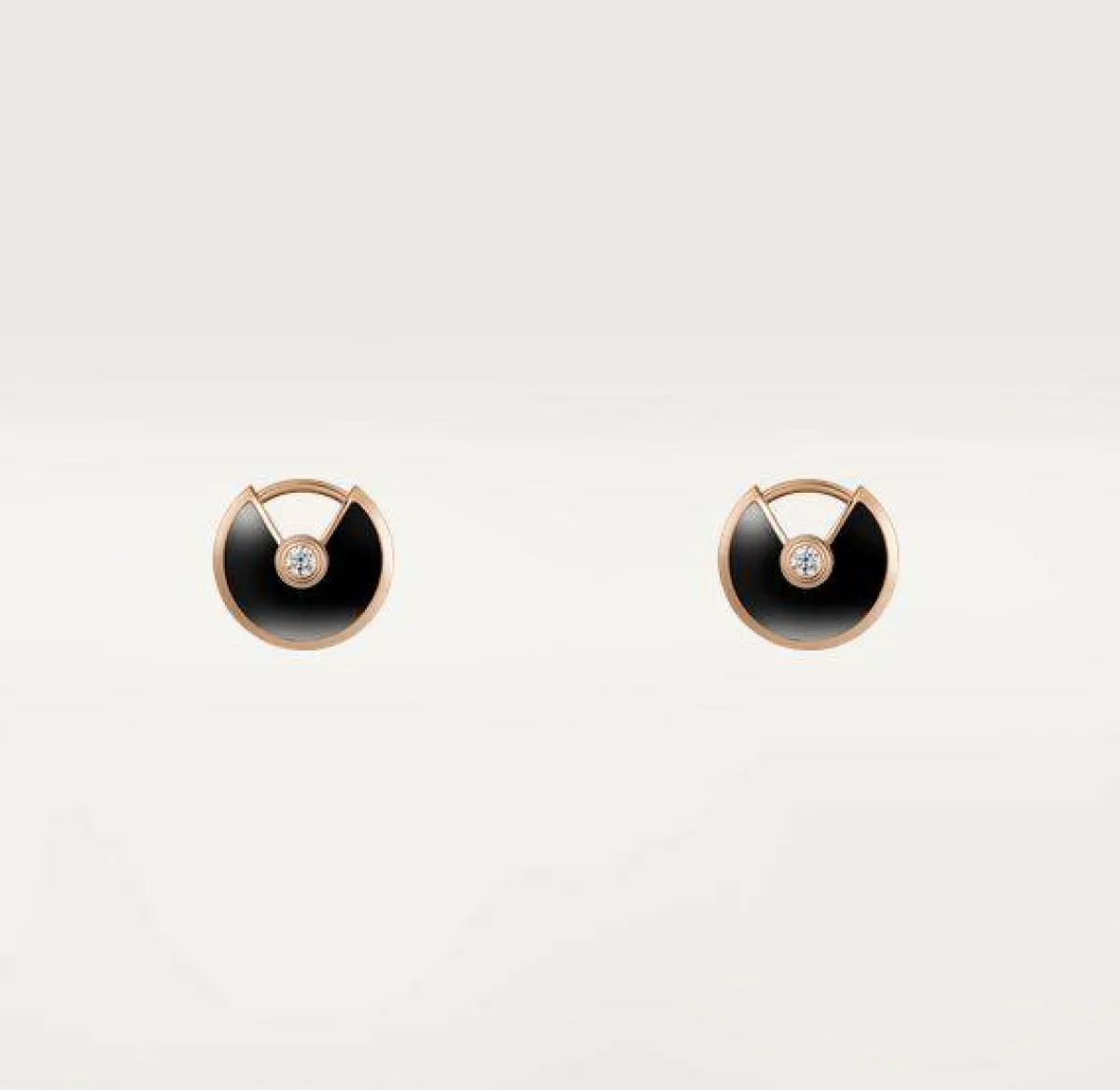 قدمت ماركة كارتيه Cartier العديد من التصاميم الراقية لأقراط مرصعة بالأونيكس والألماس، أعجبنا منها هذا التصميم لأقراط Amulette de Cartier، التي صُممت من الذهب الوردي عيار18 قيراطاً، وجاءت مرصعة بحجرين من الأونيكس، مع ماستين بقطع بريانت بوزن 0.05 قيراطاً.