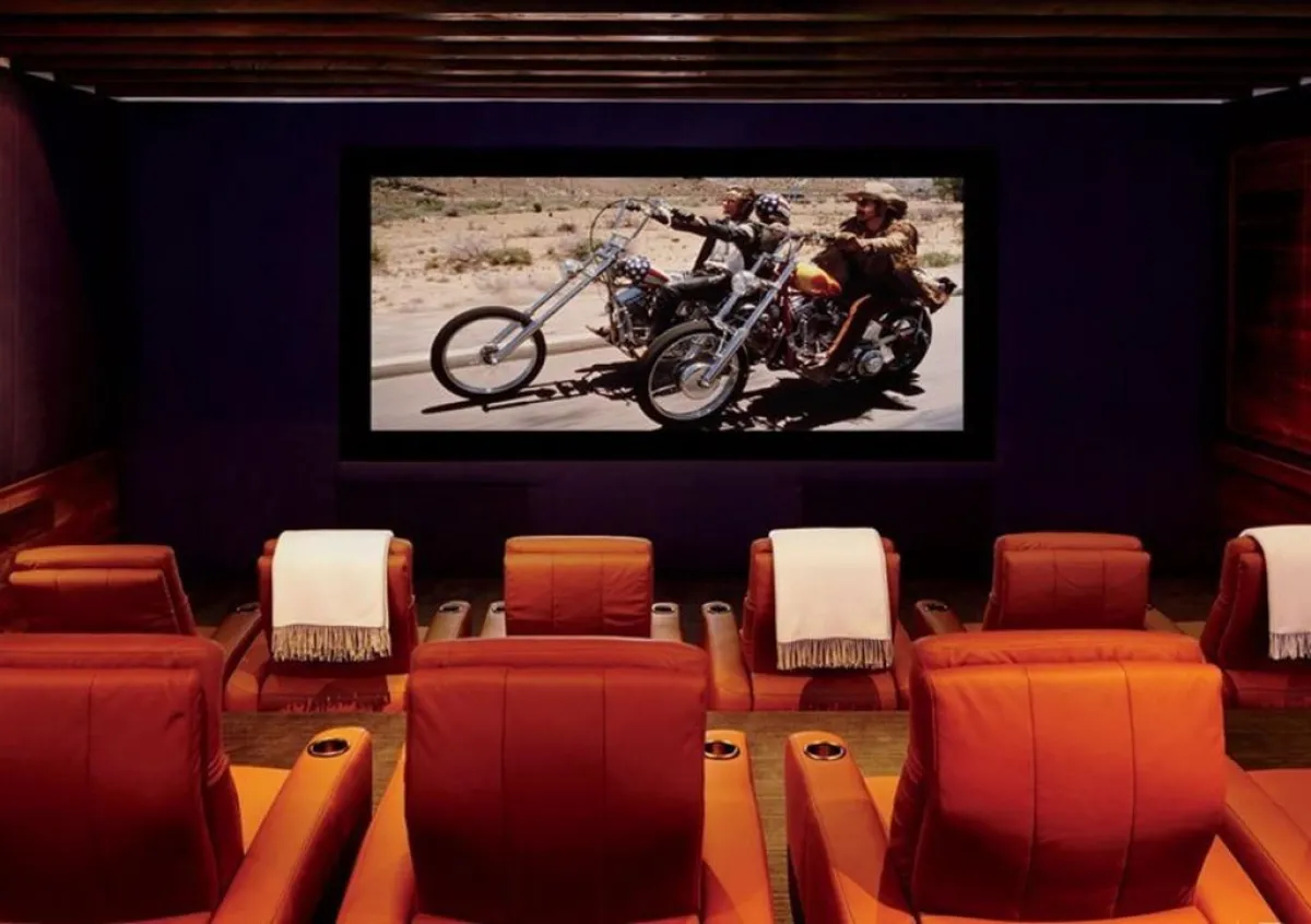 وفي المساء، يجتمع المالك مع أصدقائه في غرفة السينما، على كراسٍ جلد برتقاليّة.
