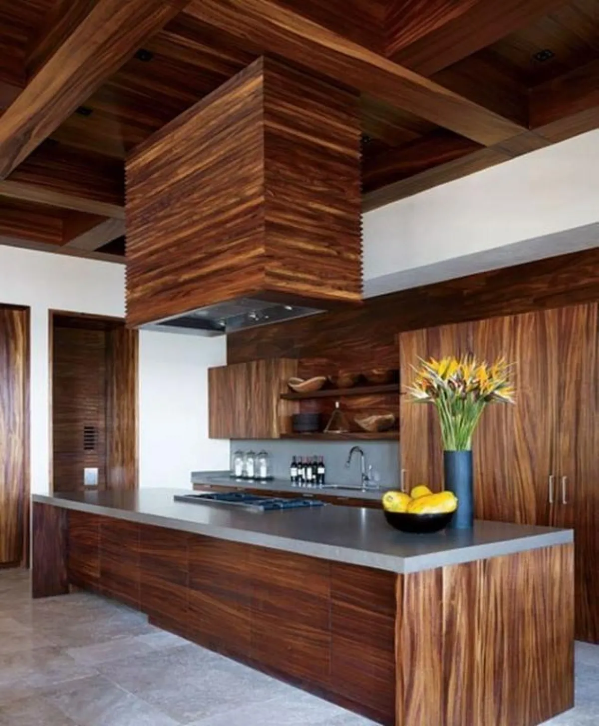 ويؤثث الخشب المطبخَ البسيط الذي تتوسّطه طاولة لتناول الوجبات السريعة، مع الأصدقاء المقربين.