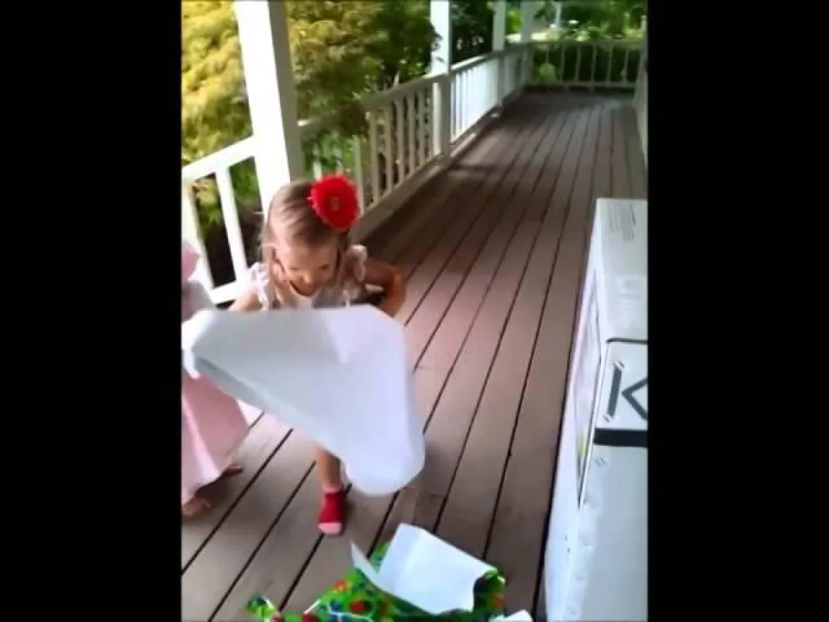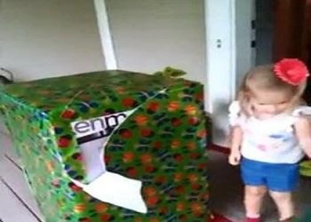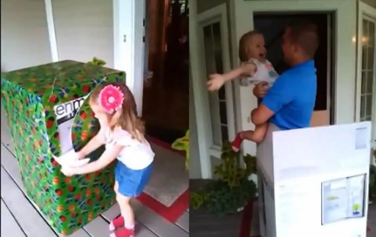 ووفقاً لصحيفة "مترو" البريطانية، فقد تم إخبار الطفلة أن هديتها في العلبة، لتشرع وحدها في فك شريط الهدايا، ثم إزالة الورق الذي يغلف العلبة حتى تتمكن من رؤية الهدية، وسط تشجيع والدتها لها على مجهودها، وبعد انتهائها من إزالة الغلاف والشريط والبدء في فتح العلبة الكبيرة التي تقارب طولها، اندفع والدها من داخل الصندوق، فابتهجت الطفلة، وعانقت والدها وقبلته في مشهد رائع.