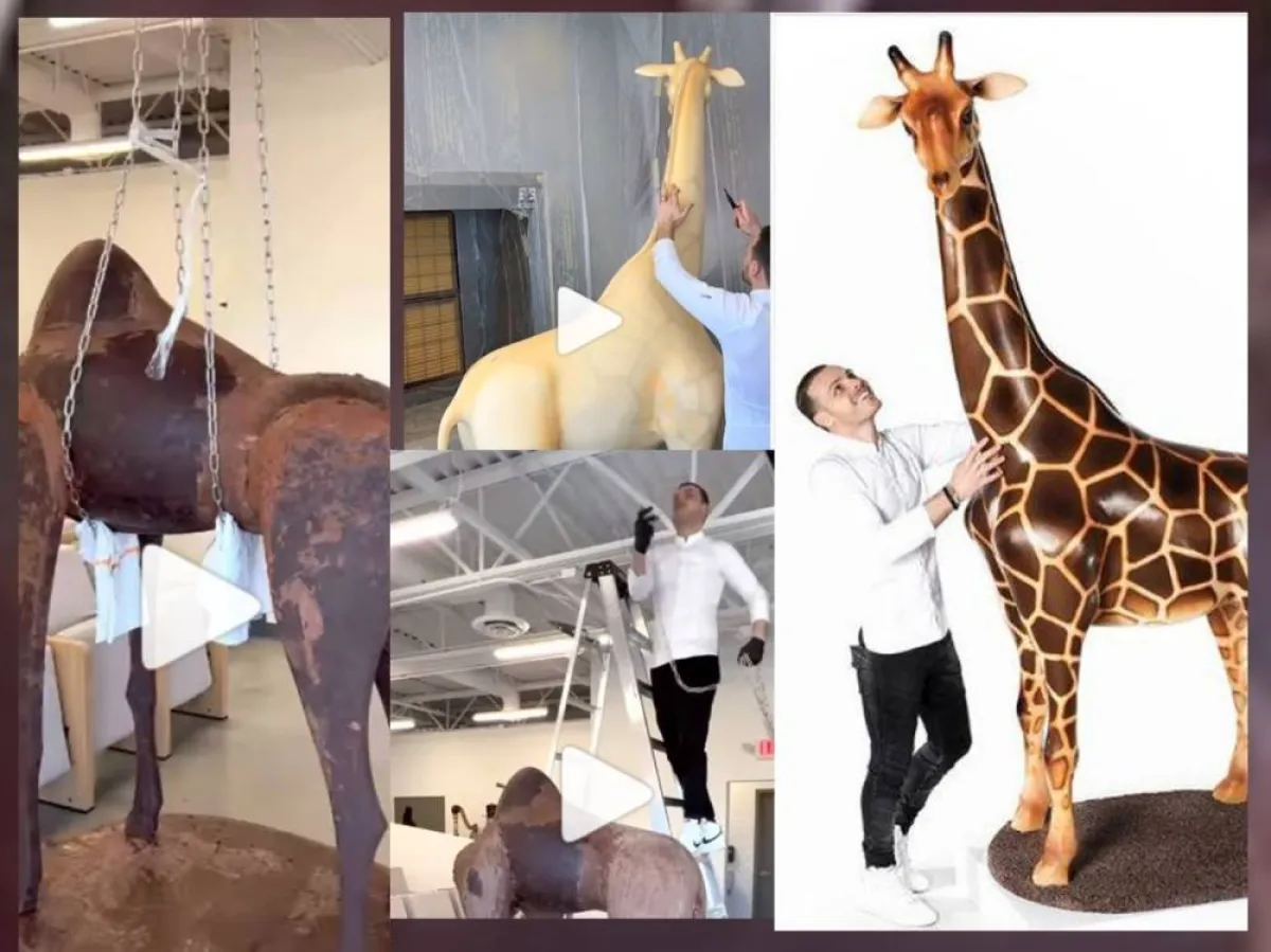 الزرافة من أطول الحيوانات البرية بلا منازع، حيث يصل طولها إلى 5.5 متر، لكن الزرافة التي صنعها الشيف الفرنسي كانت بطول 2.5 متر لا يستطيع كثيرون تمييزها عن زرافة حقيقية.