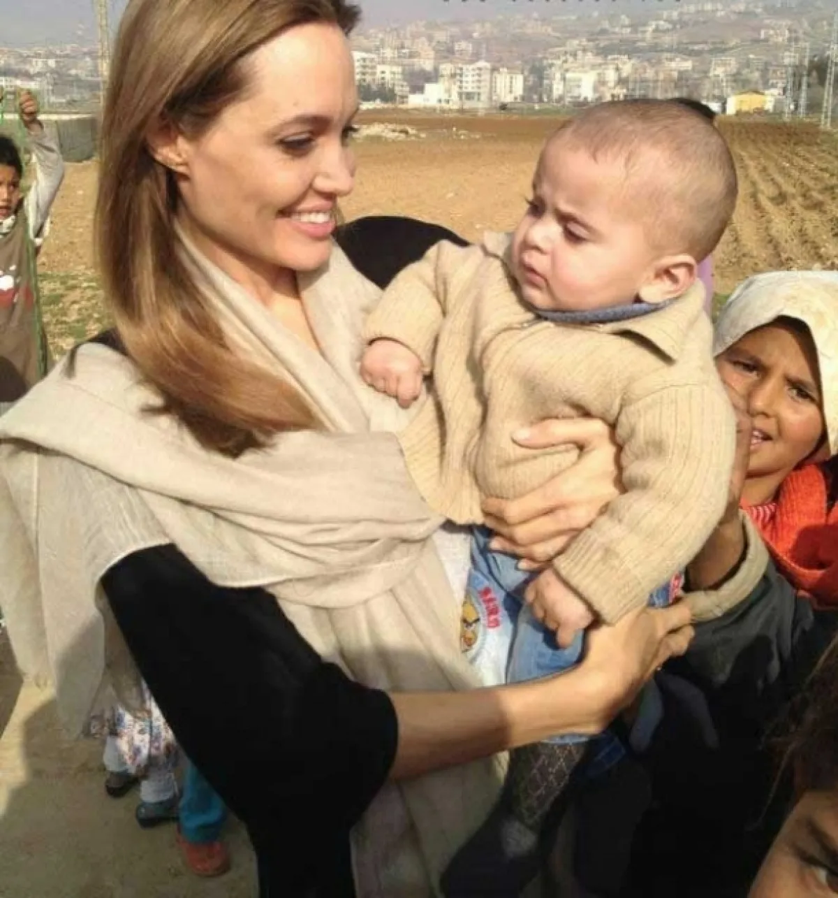 في إطار أعمالها الإنسانية زارت النجمة الأمركية Angelina Jolie اليوم الأحد مخيمات للاجئين السوريين في منطقة زحلة في البقاع شرق لبنان.