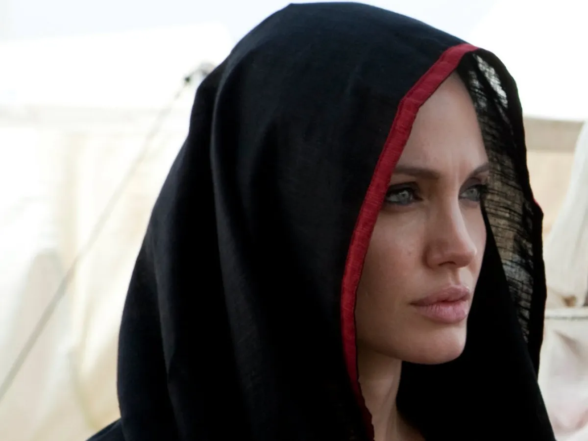 وقد شوهدت Angelina تخفي وجهها بوشاح صوفي غطت به رأسها بينما كانت تتحدث لطفلة صغيرة، قبل أن تخلعه لاحقاً.