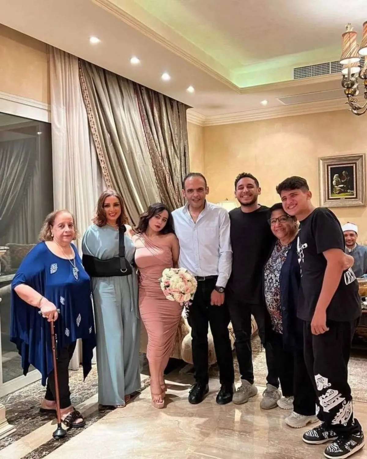 وظهرت أنغام في صور عقد القران المنشورة عبر حسابها بموقع انستغرام، برفقة نجليها عبد الرحمن وعمر، ولا زالت ترتدي الواقي الطبي الخاص لحماية الكتف بعد خضوعها لجراحة عاجلة منتصف مايو الماضي لإنقاذ أوتار الكتف.