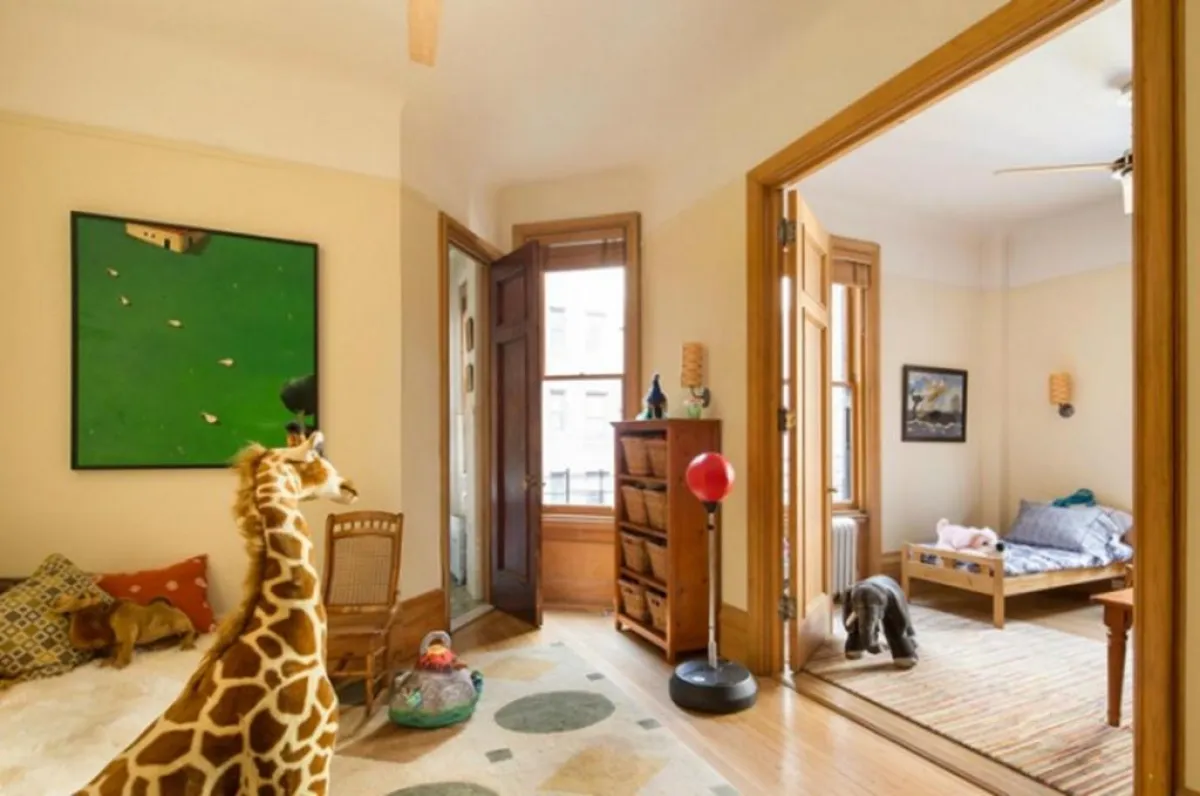 وتقسم غرفة نوم الأطفال إلى جزئين منفصلين، بواسطة باب من الخشب:الأول يضمّ أرضيّة "الباركيه" التي يرتفع سرير عليها، فيما الثاني يرصفه الرخام، ومخصّص للعب.